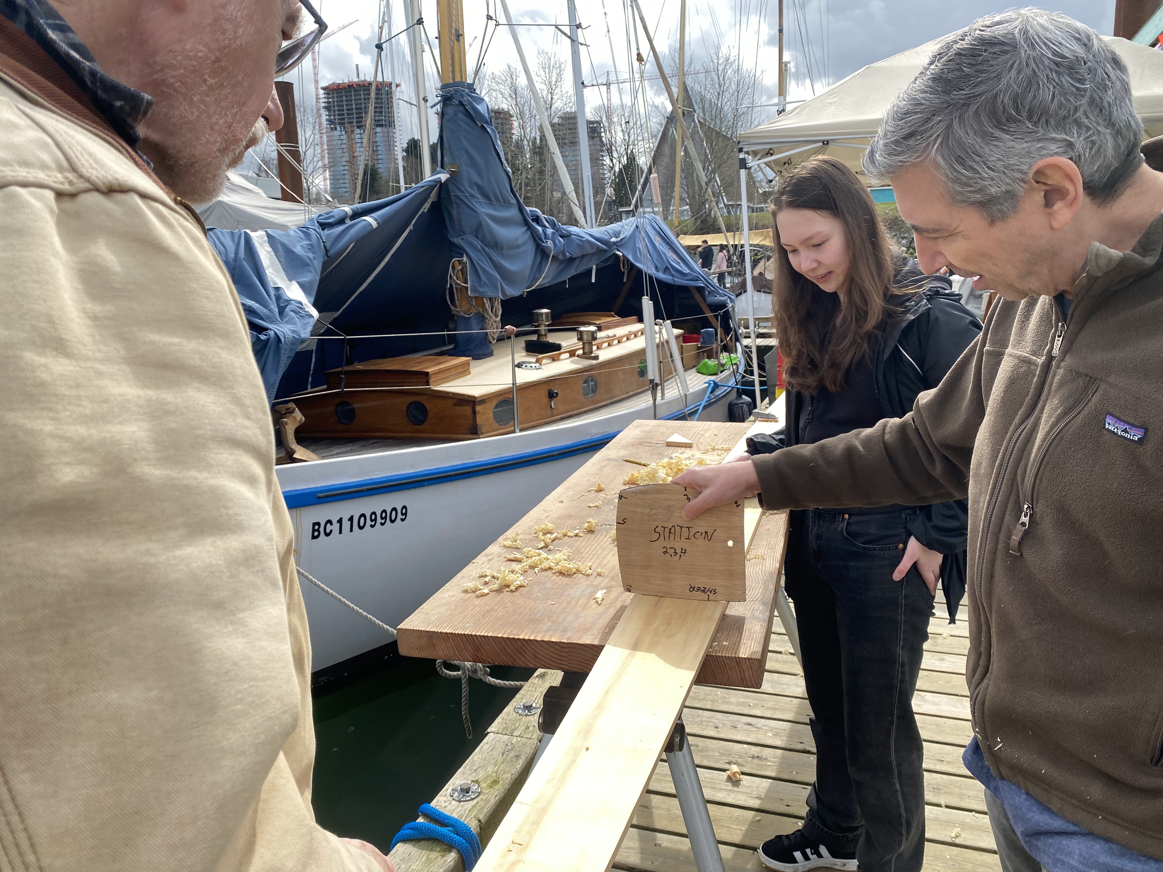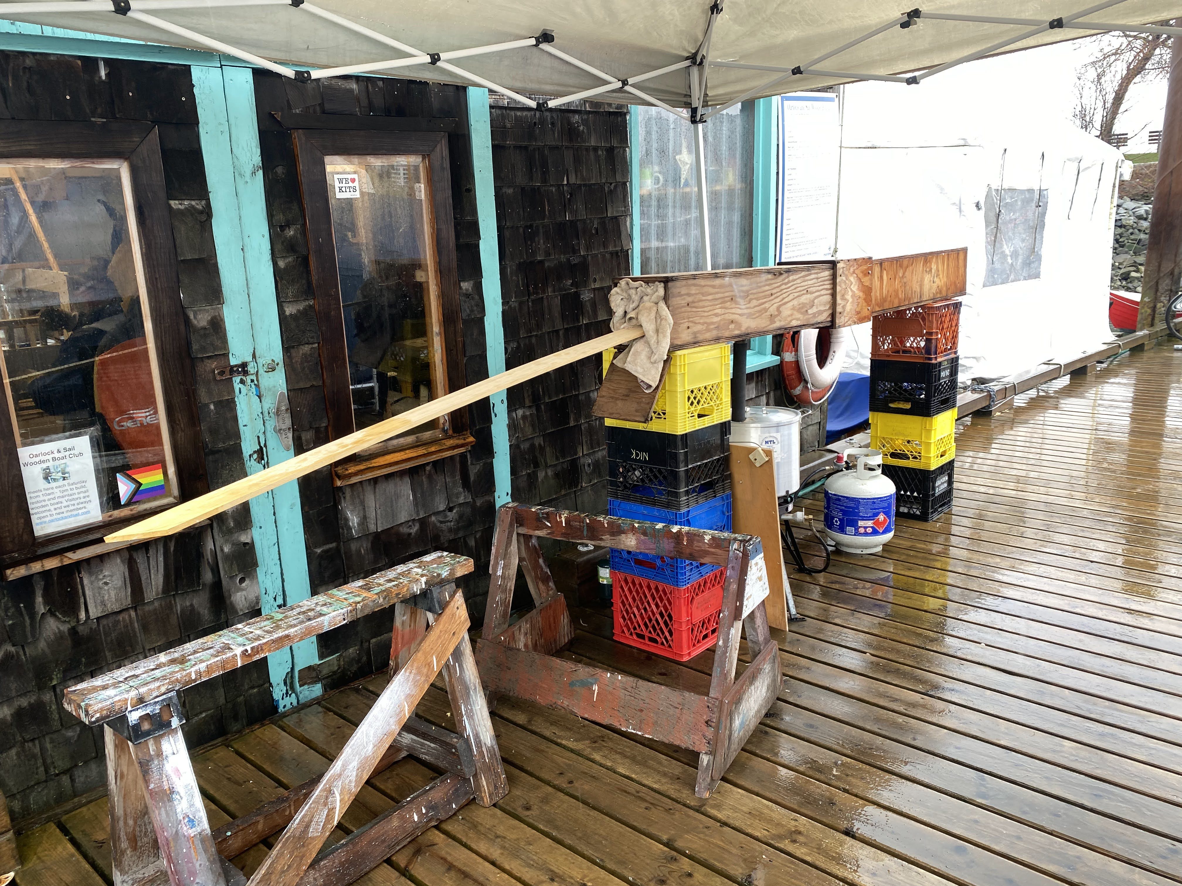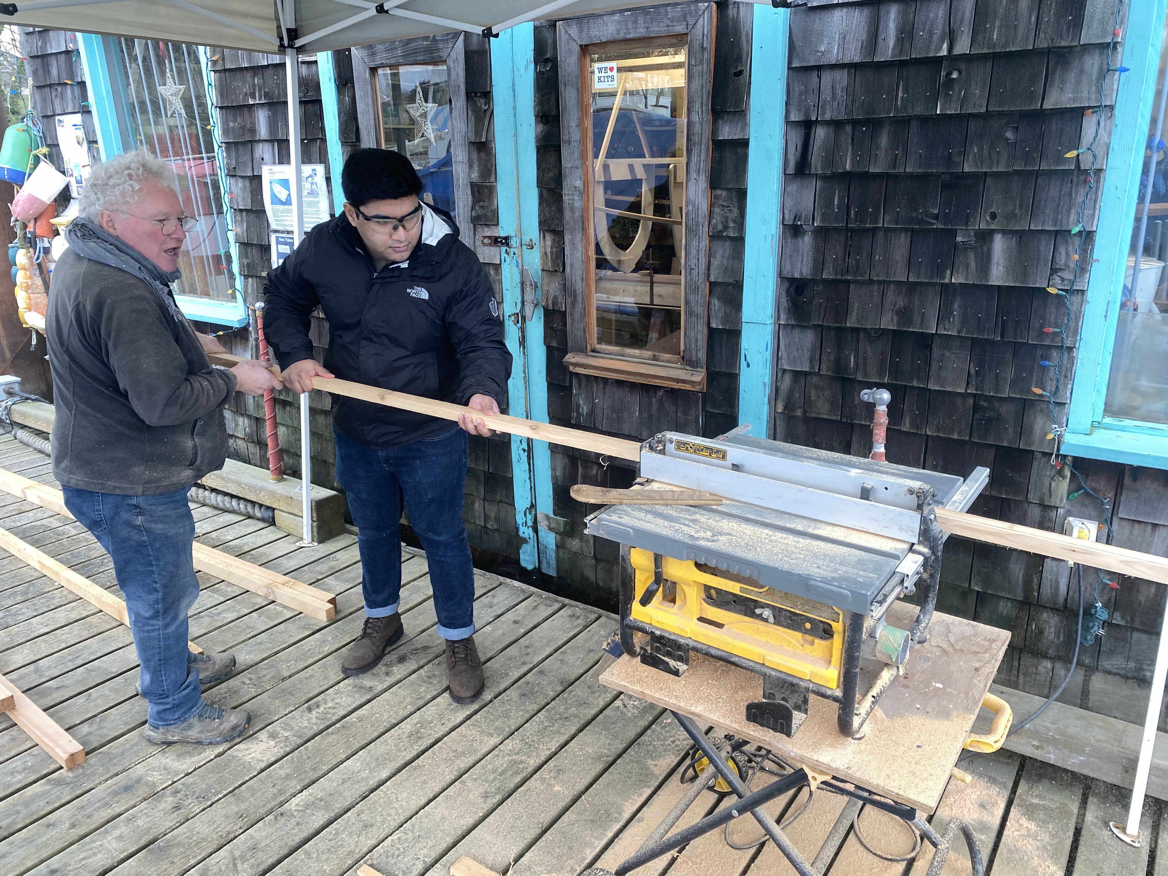 We recently lost a member of our Heritage Harbour community. George Egerton, owner of Mysterion passed away, and we raised a glass as a toast to his life. He was our resident piano tuner, and his work on that has been enjoyed by many. His grandson was one of the boys building the boat, and George got to take part in the launch. He will be missed by many.