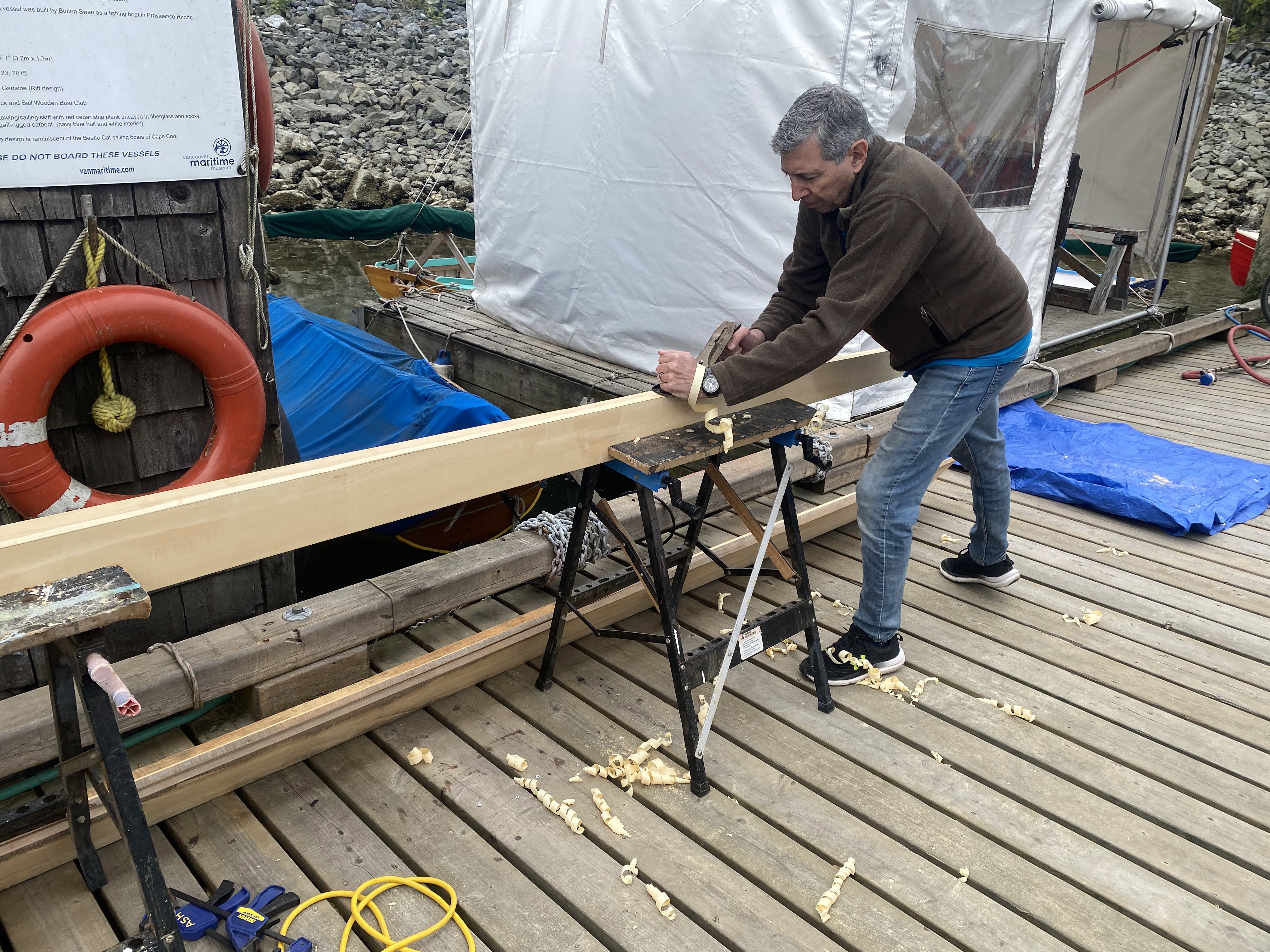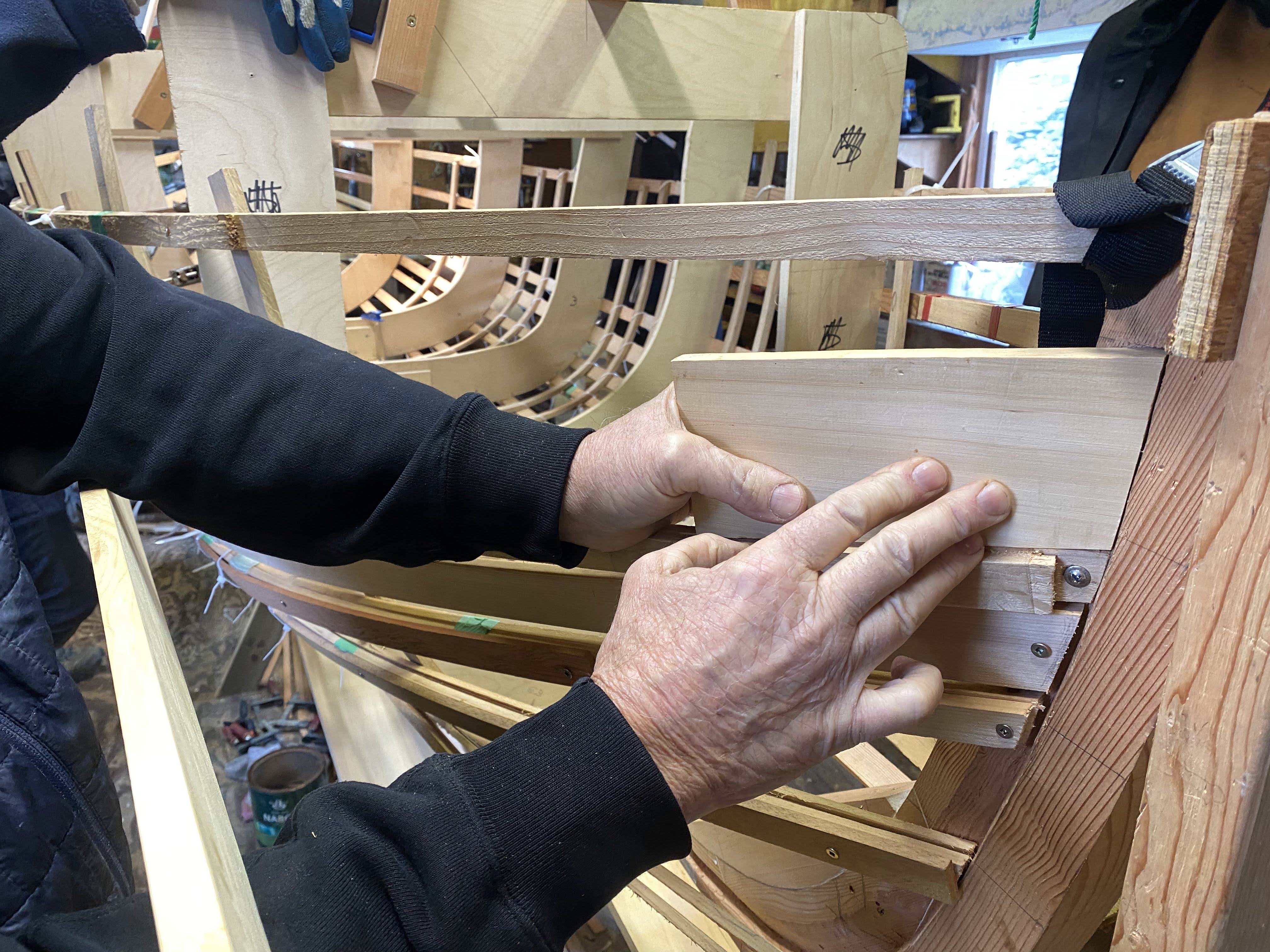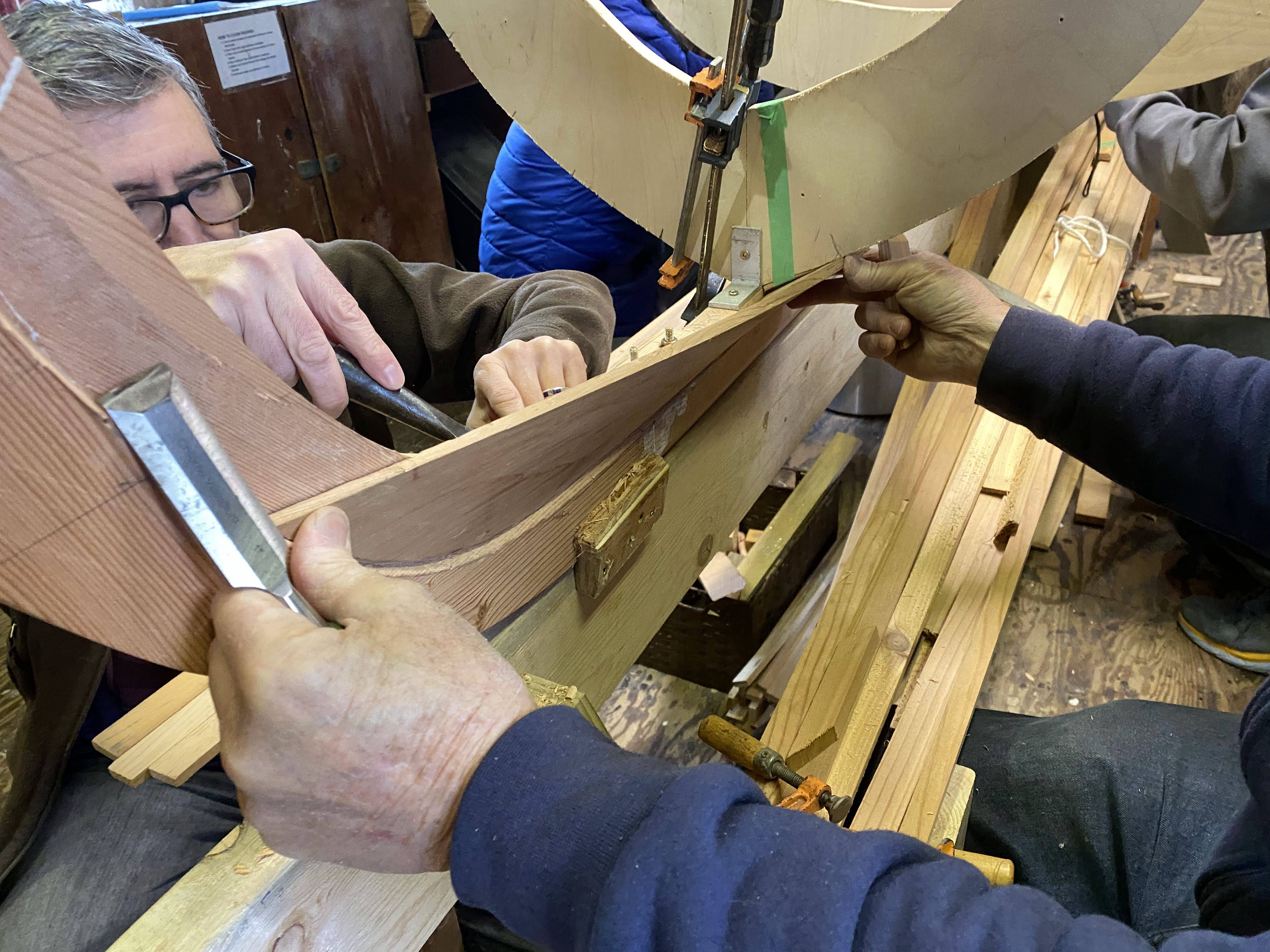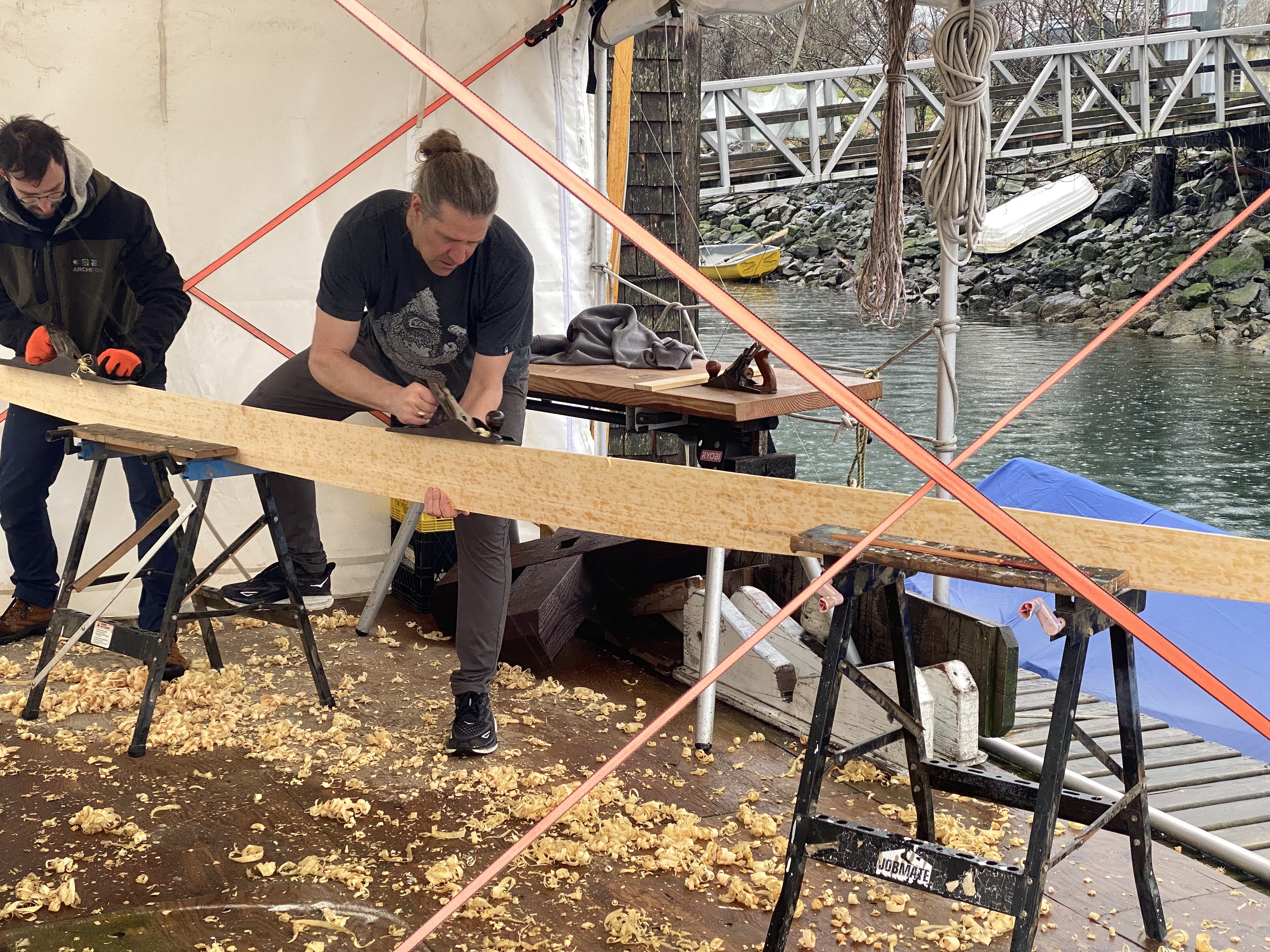 We’ve shaped the next pair of planks, and are working on backing them out to prepare for fastening. This will give us the first joint between planks that we need to carefully fit. And then repeat the process a few more times!