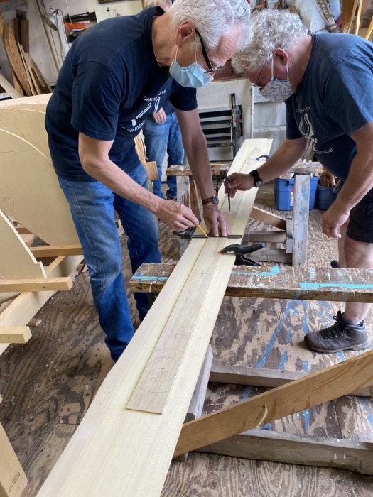 We started with milling all the yellow cedar planking stock, and used the new planer dust collection hood with the vacuum. It was effective in collecting the chips, but the vacuum filled far too quickly! We’ll have to work on that.