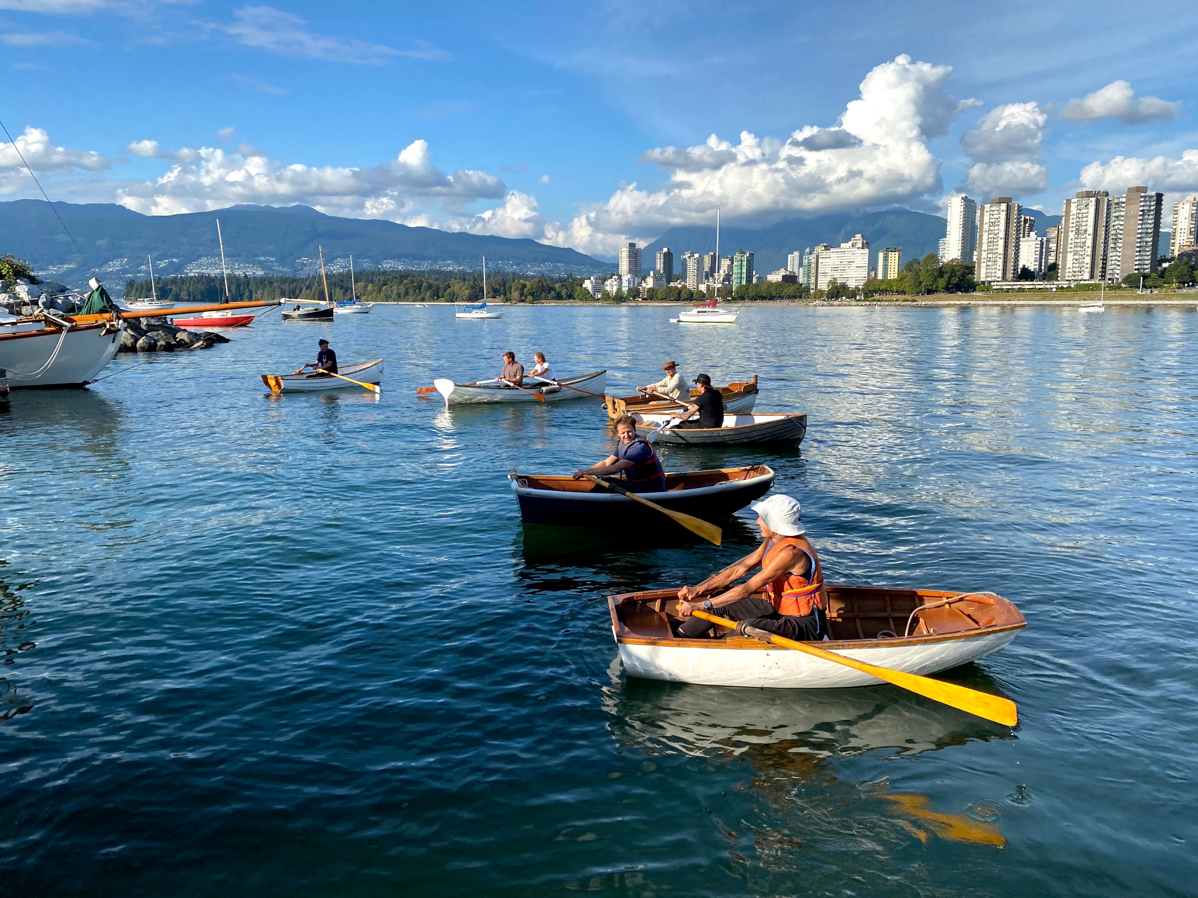 After the sailboats were all back at the dock, the rowboats came out to play – even the Fancy Pram got pulled out from under the bench in the shed and pressed into service! Everyone made it around the course without going for a swim, so that’s a pretty good record. First across the line was Mattias in Feather – nice rowing!