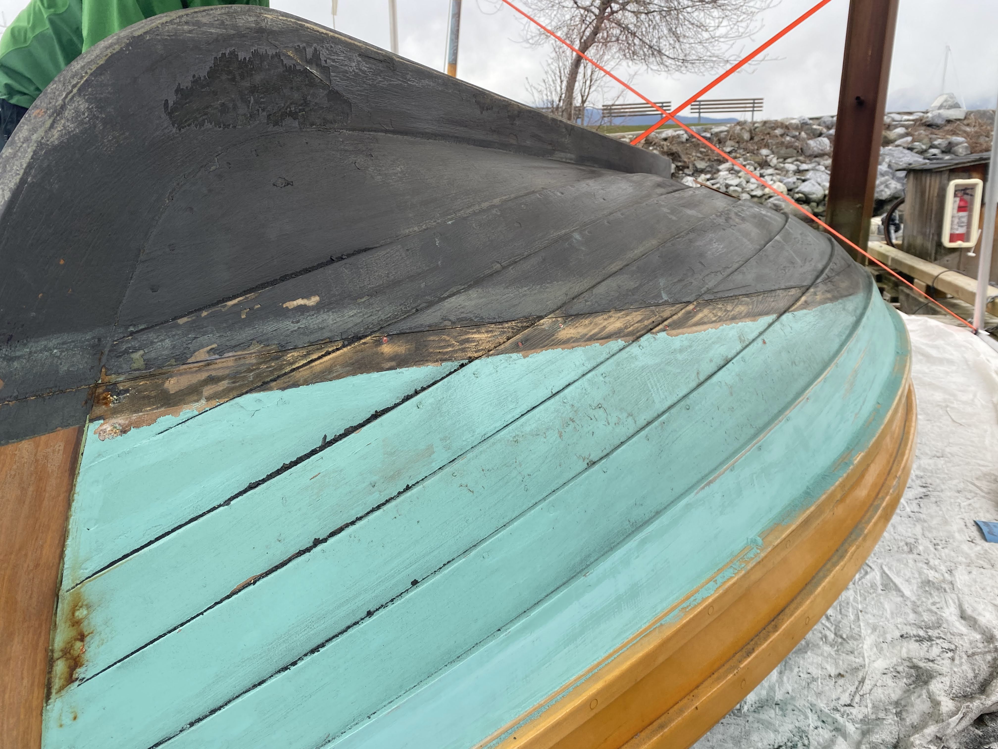 After the joy of finishing off that beauty and seeing her off to her new home, we’ve moved on to refinishing our fleet of small boats. The Vogler is nearly done with new varnish and paint, and we’ve almost got Button Swan ready for new finishes.
