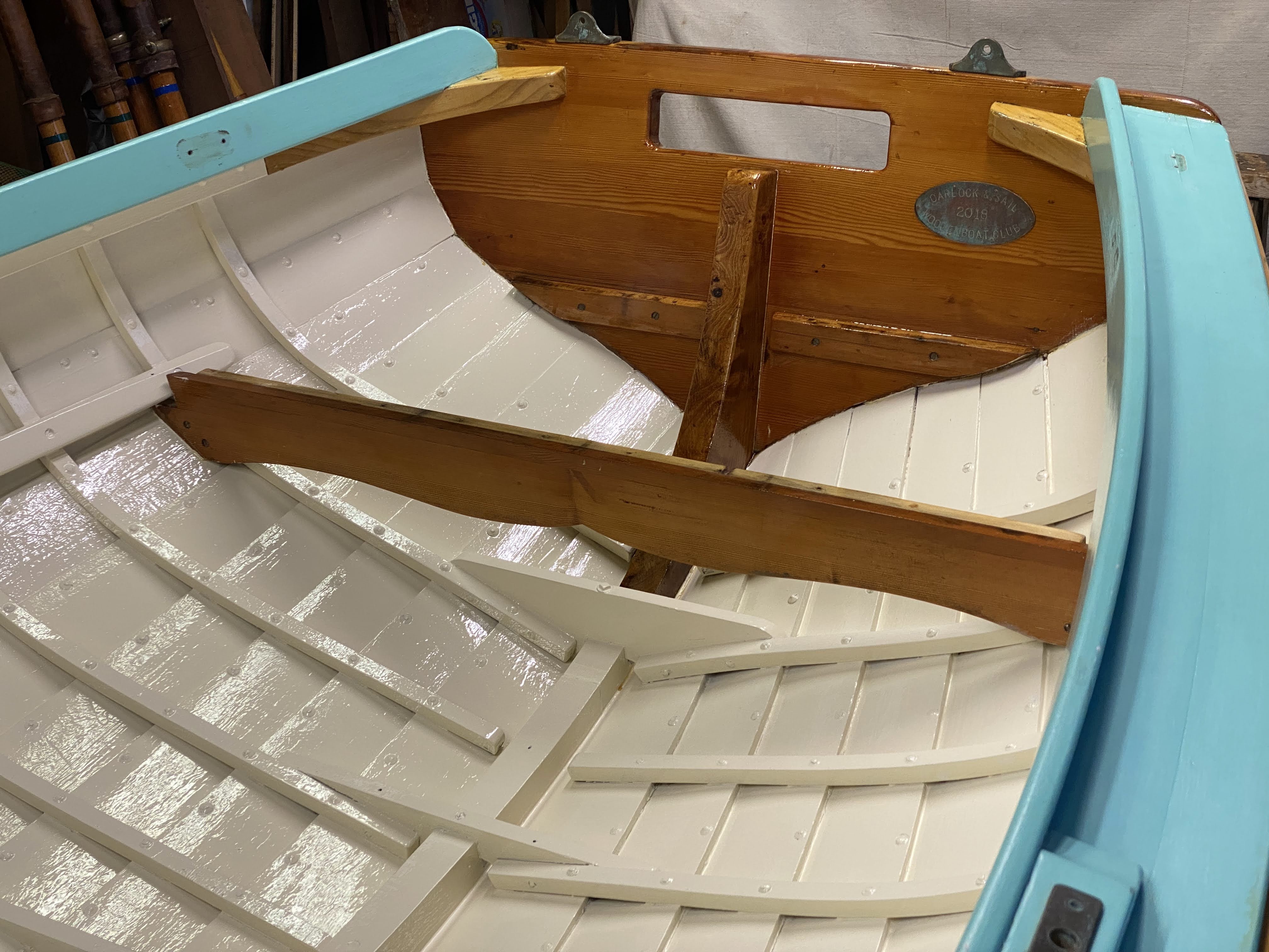This coming Saturday (July 9) we’ll reassemble her interior, turn her over for a coat of bottom paint, and then GET HER BACK IN THE WATER!!!! It’s been much too long!