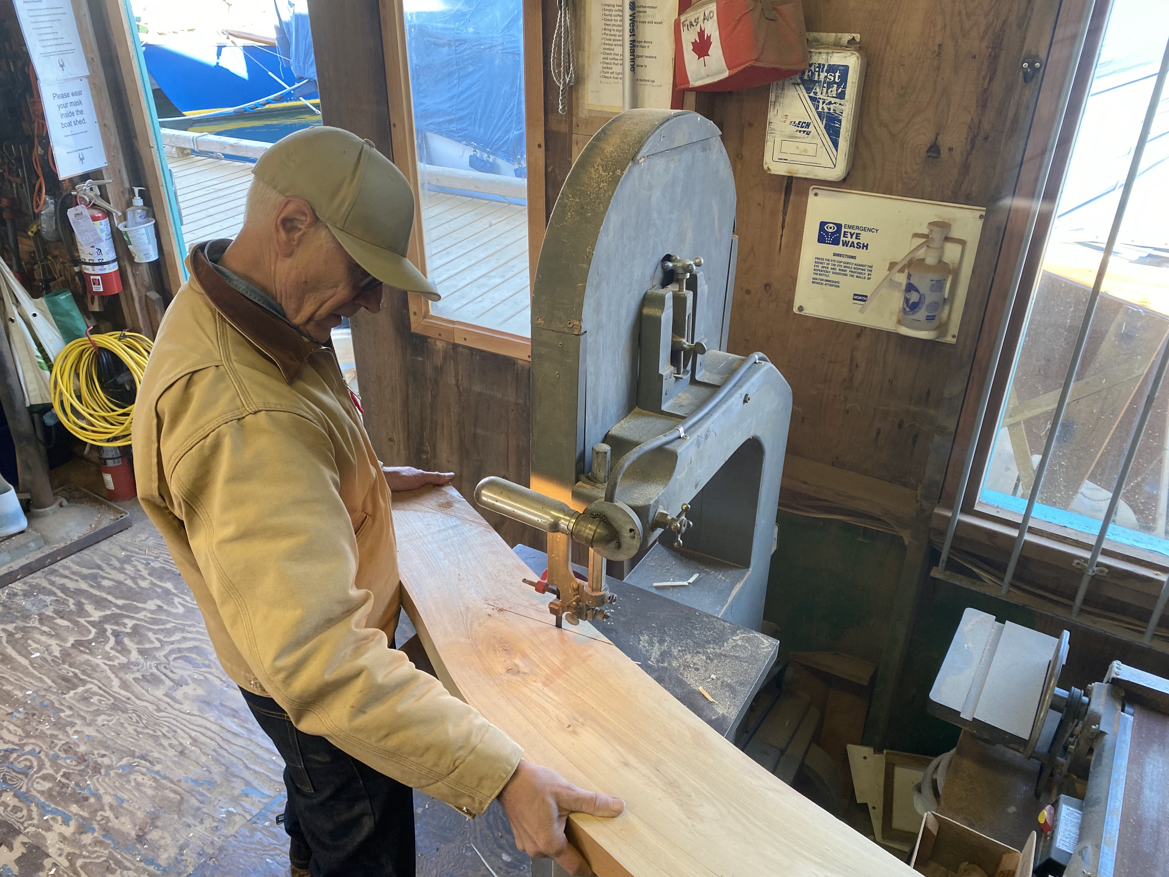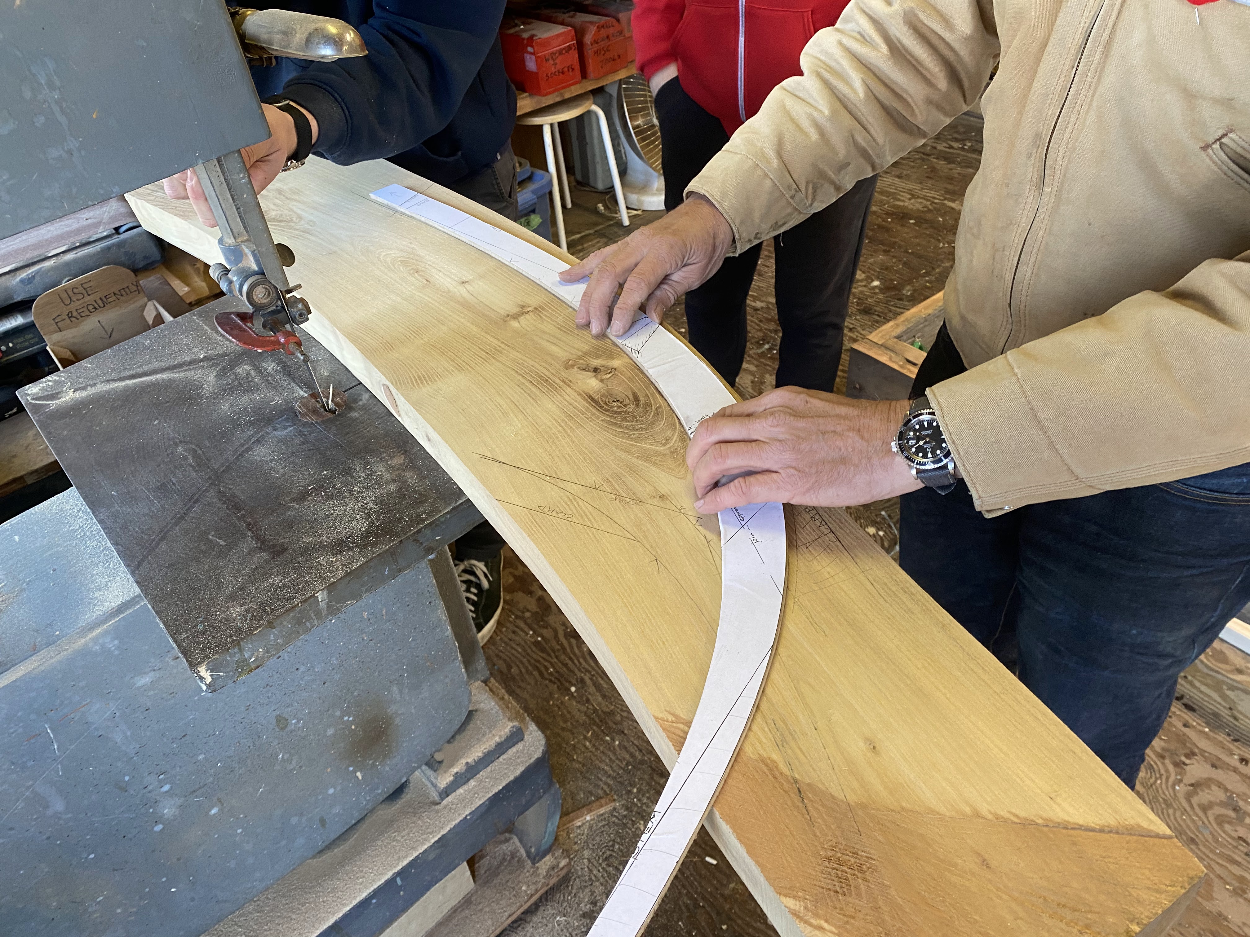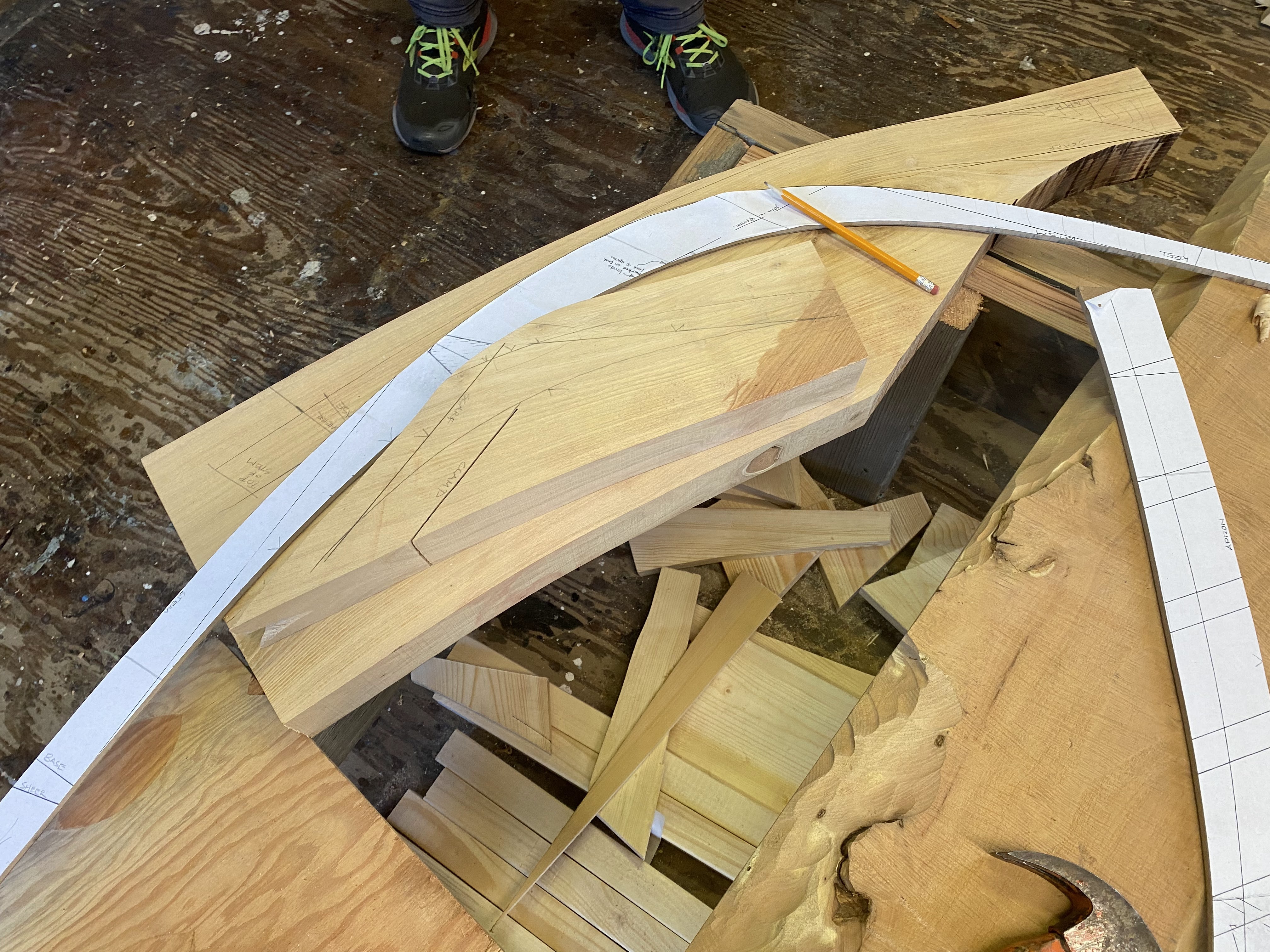 The stem was also worked on during that time, and we’ve got the outer stem rough-cut using Black Locust. Next Saturday we plan to laminate the inner stem using Douglas Fir.