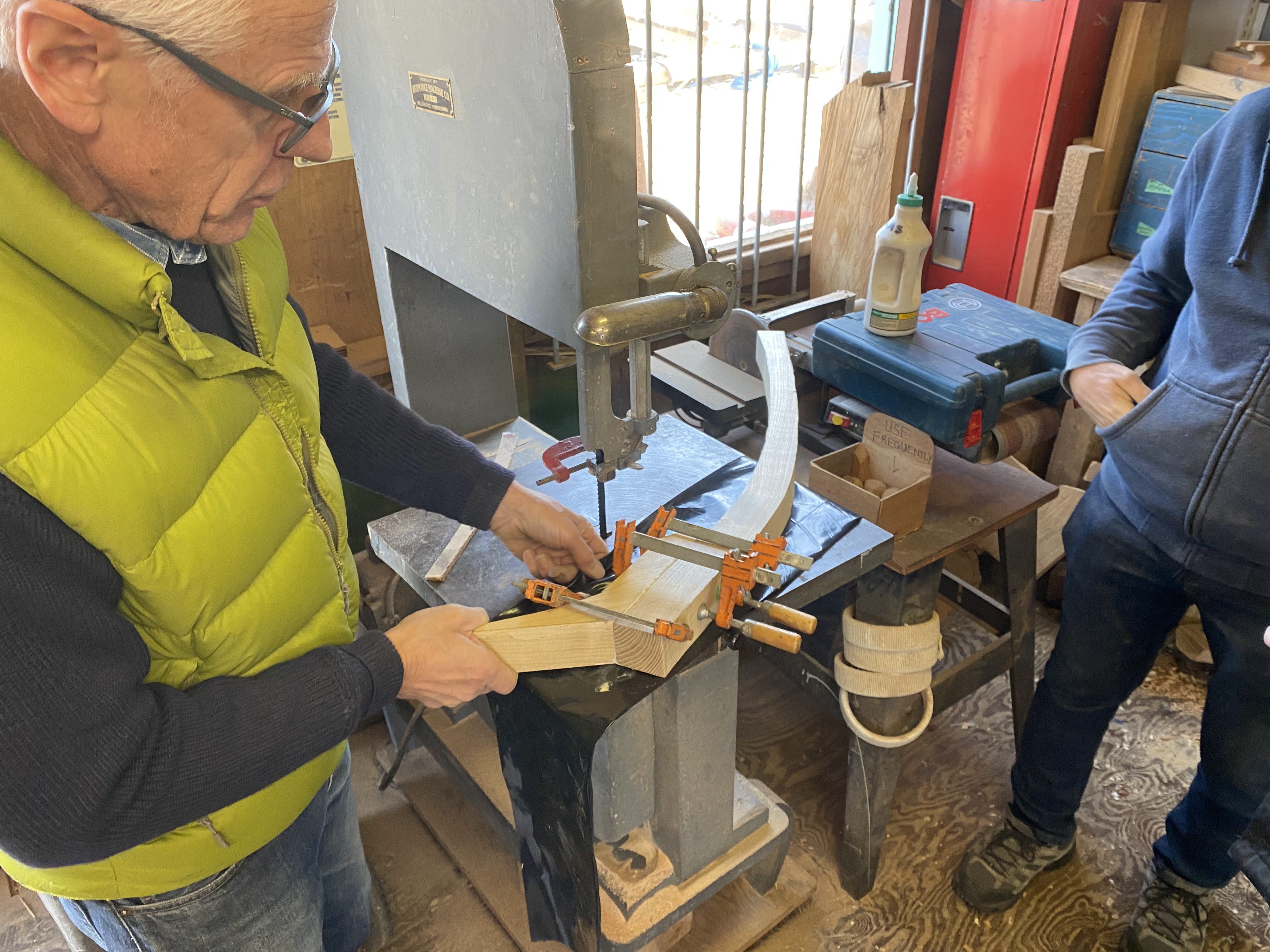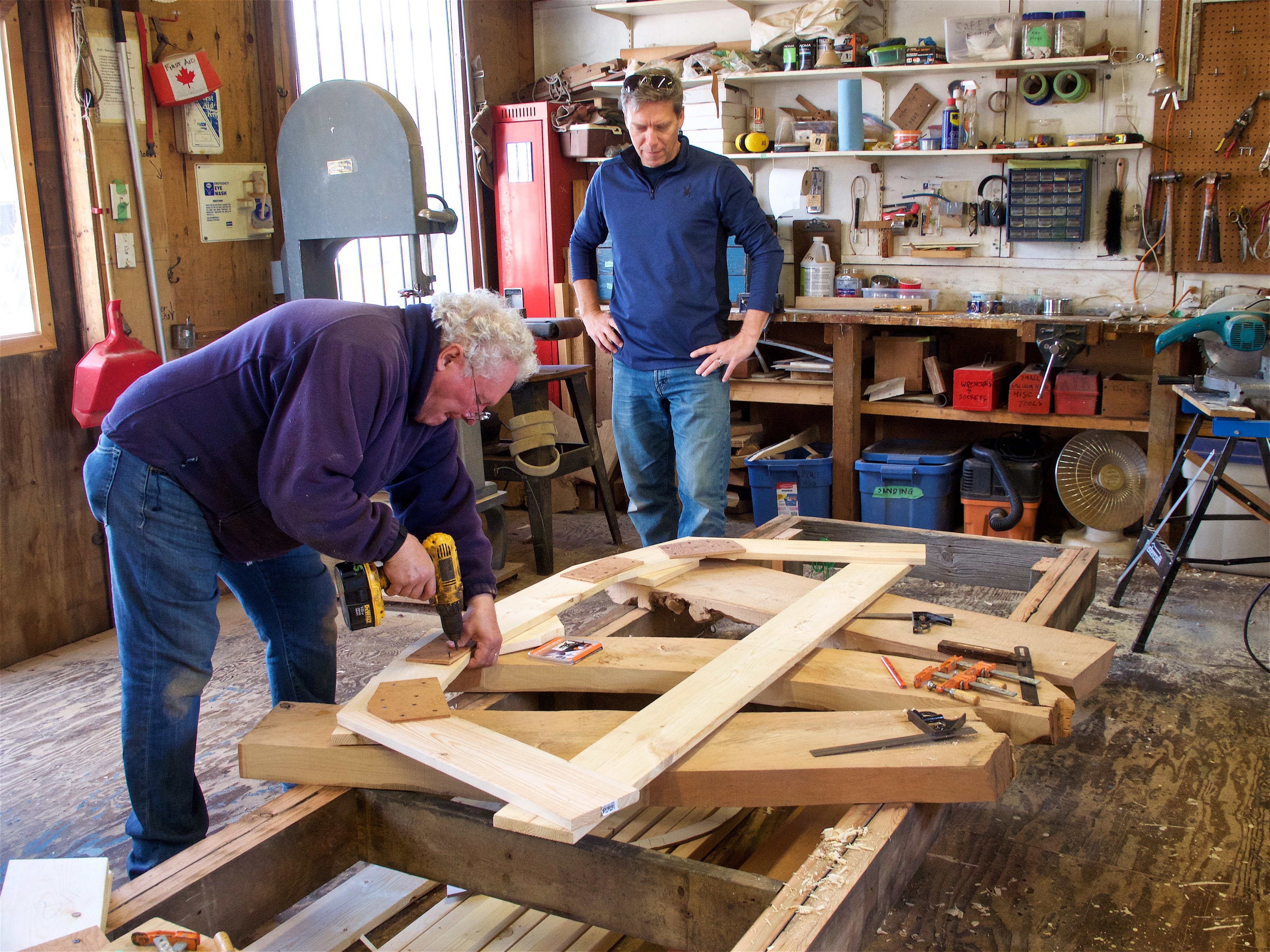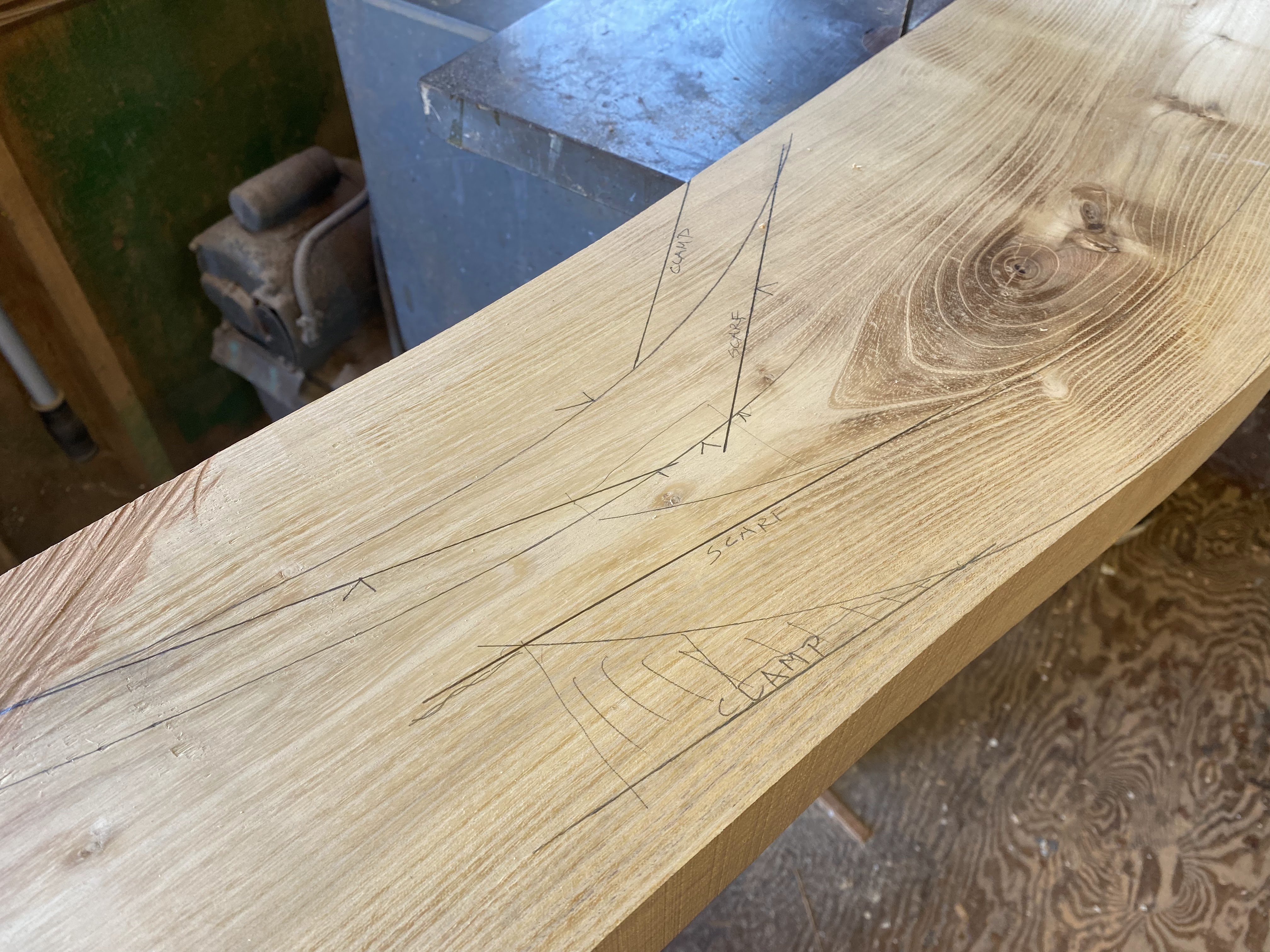 The stem was also worked on during that time, and we’ve got the outer stem rough-cut using Black Locust. Next Saturday we plan to laminate the inner stem using Douglas Fir.