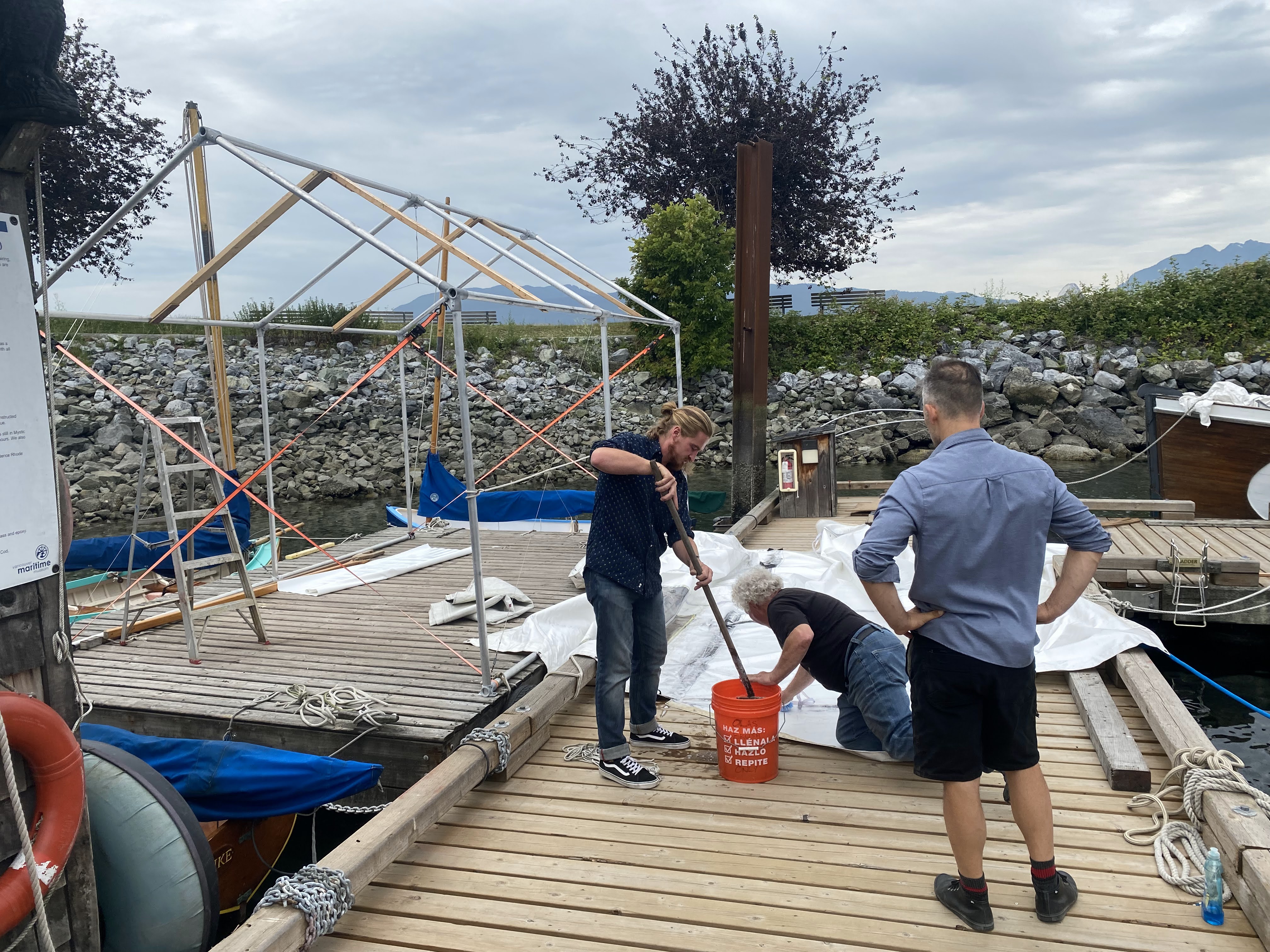 Our tent got some cleaning done, and preparation for some reinforcing – the strong winds are taking their toll on the material.