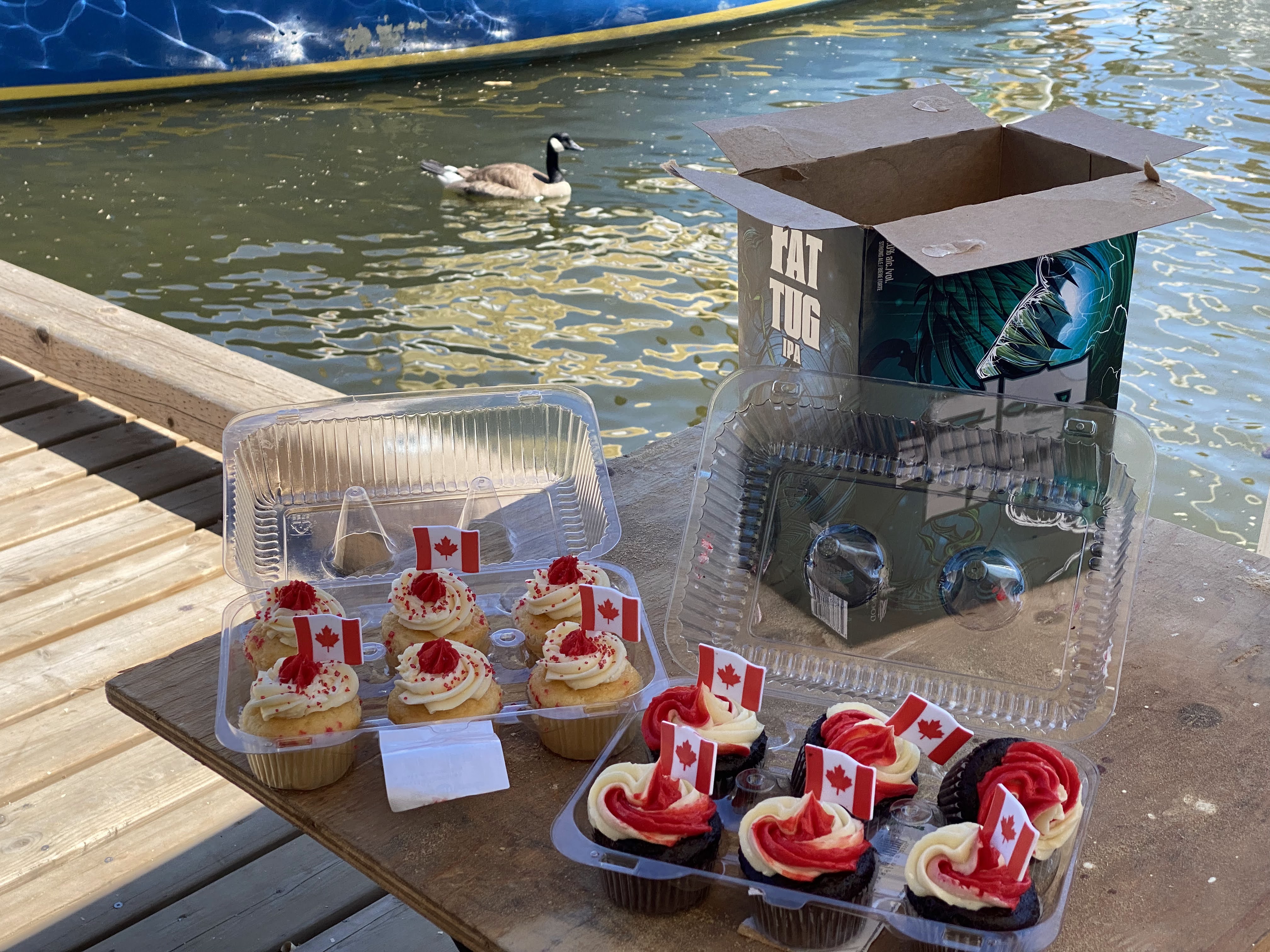 And, sustaining us through all this productive labour of love, there’s a steady stream of treats, including these beautiful cupcakes on Canada Day (with a Canada Goose in the background).