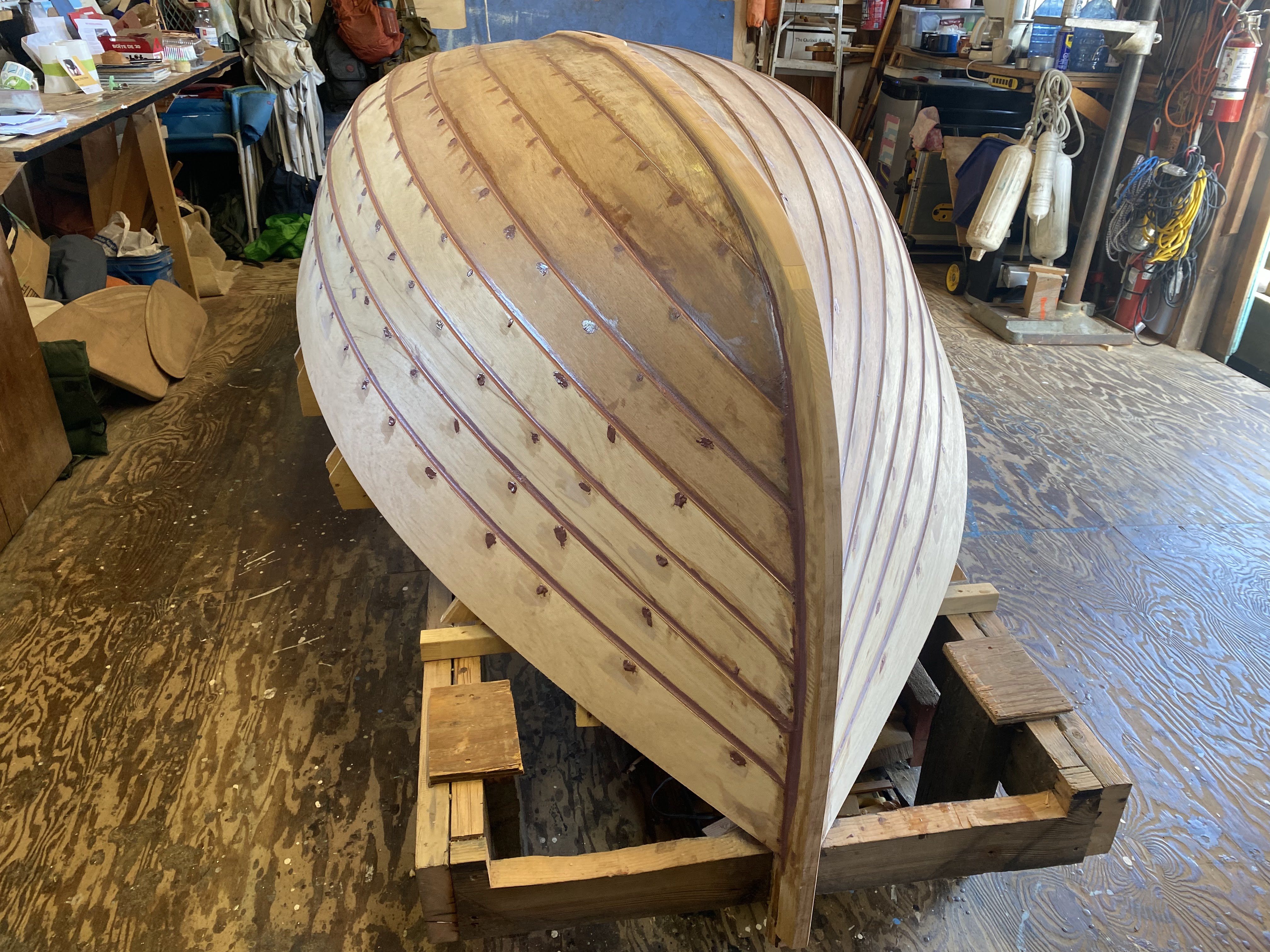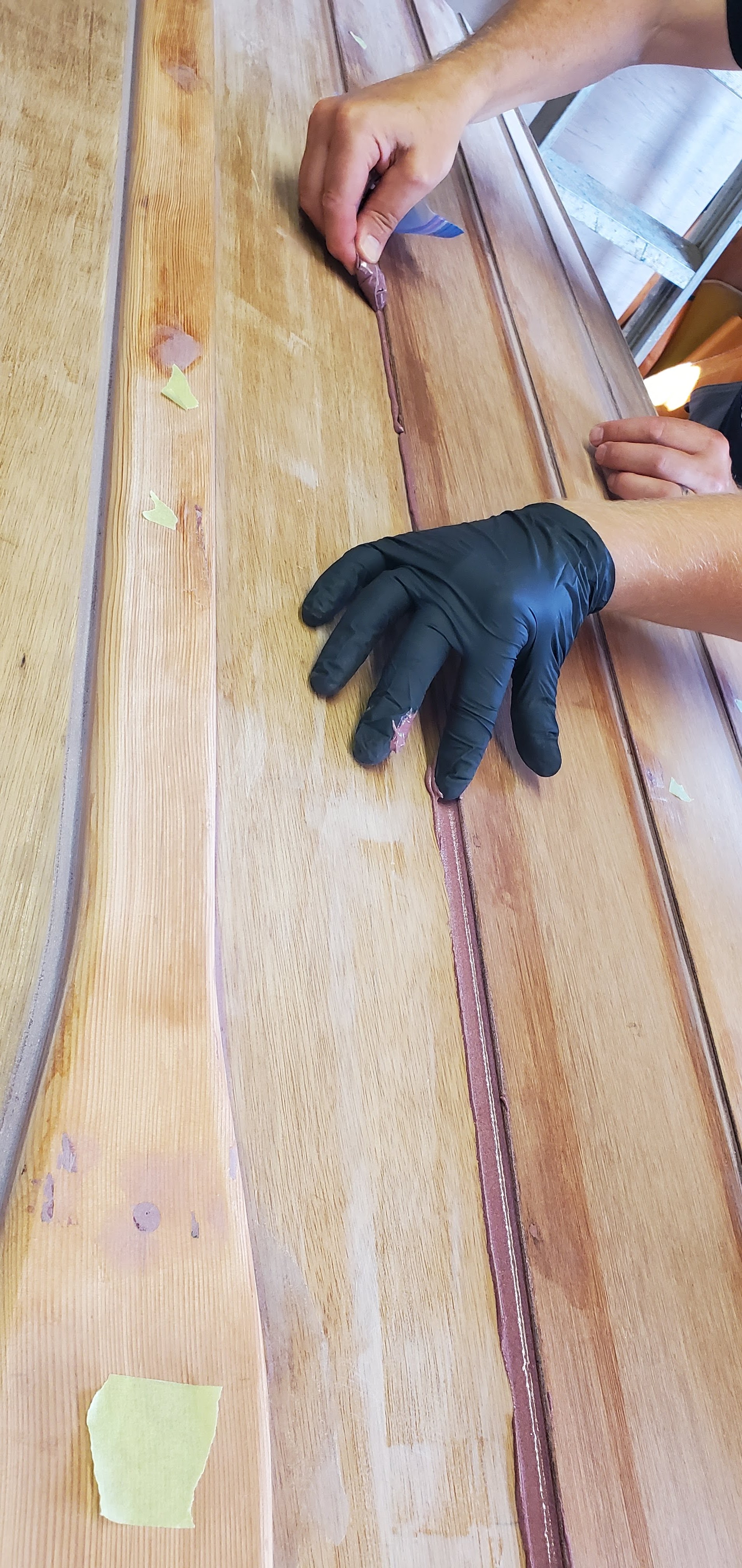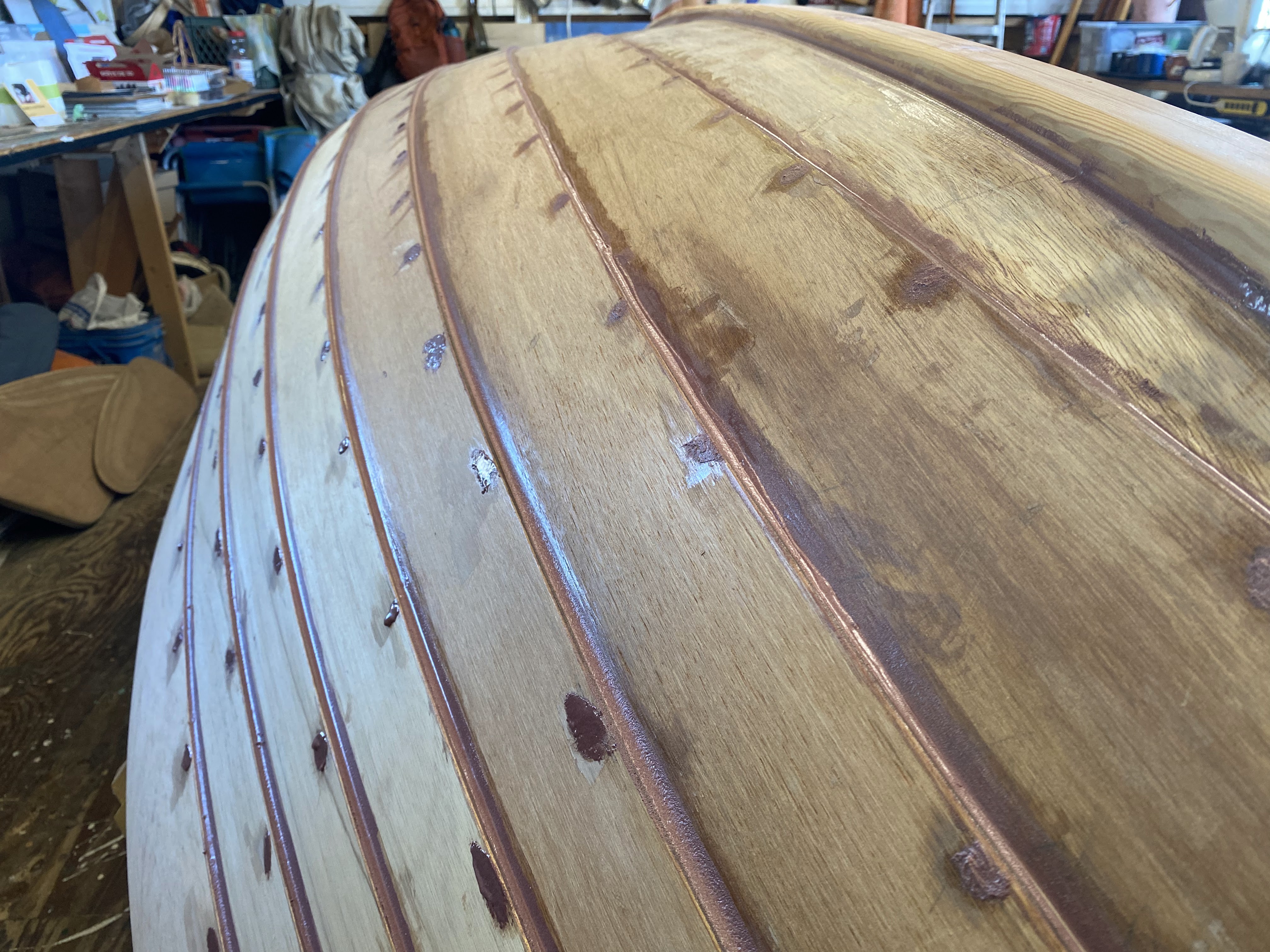 Our Gannet hull is getting patched up, filleted, and faired. It’s taking a few rounds of applying fillets and patching holes, sanding them smooth, and then coming back to refill some shrunken bits. It’s coming along nicely though, and getting fairer and smoother each time! We’re nearly ready for a couple of sealer coats on the exterior.