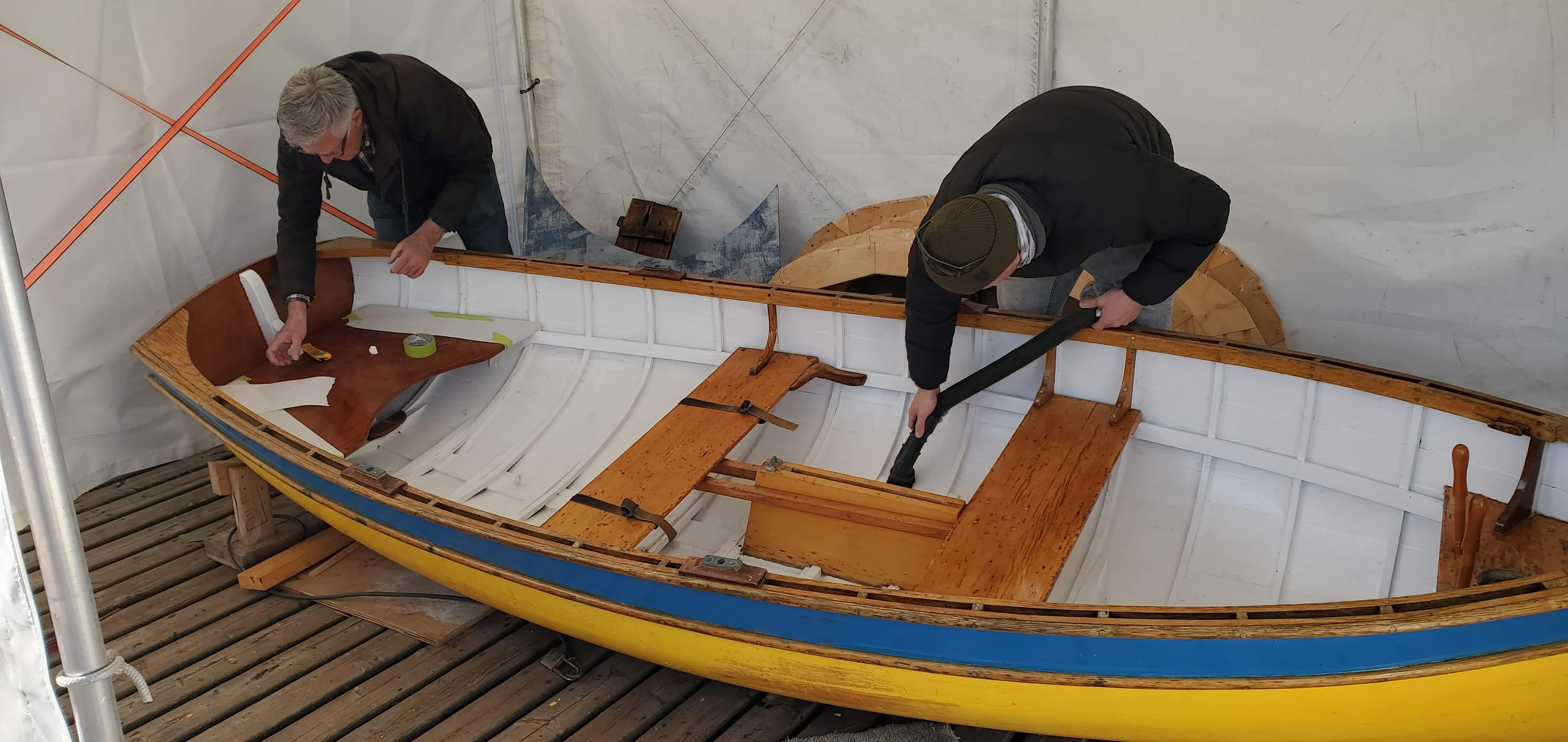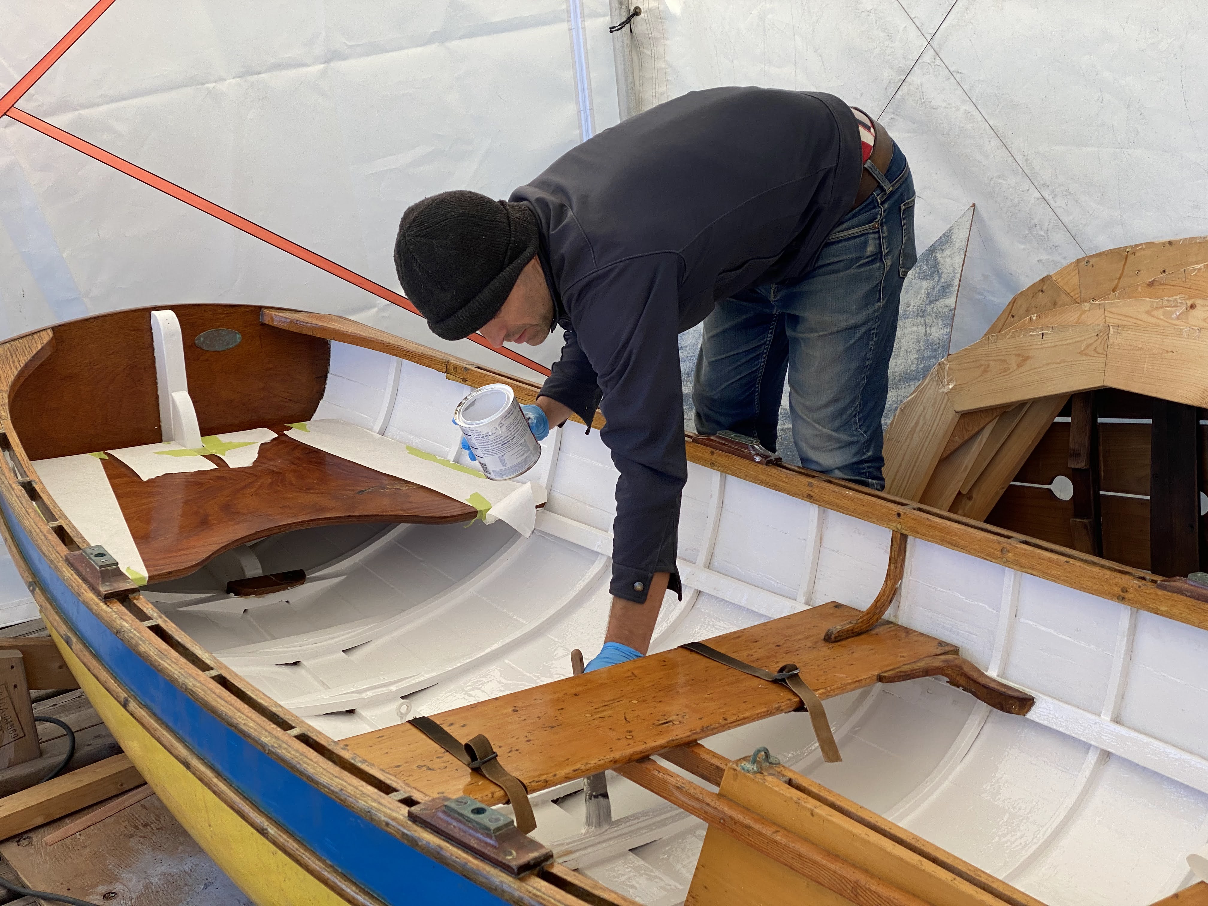 Enke is getting some attention, with a fresh coat of paint. That work had started before our Heritage Harbour Classic, and was interrupted when we needed to get her back in the water for the race. It’s been picked up again, and she’s starting to look bright and fresh again.