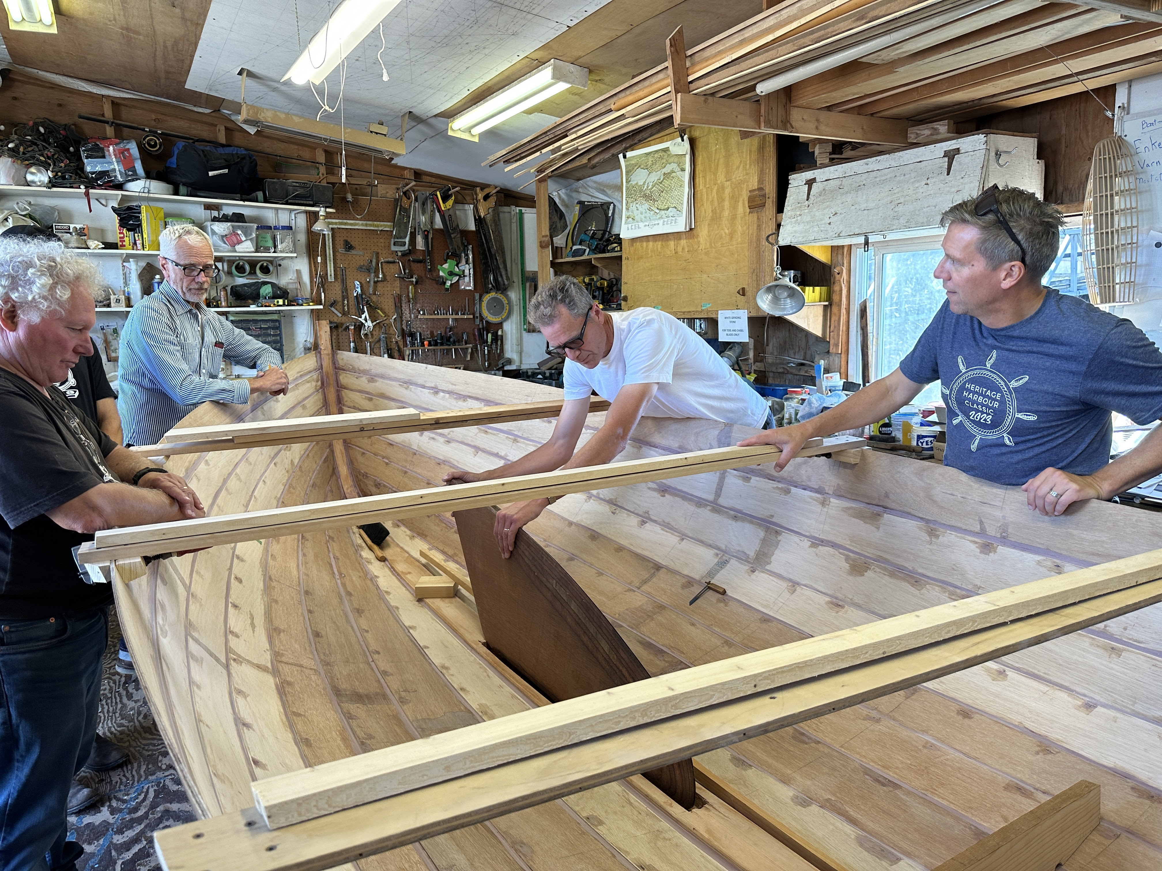 In other BIG news at the harbour, North Star of Herschel Island is undergoing a refit at Shelter Island boatyard! She was towed there last week and promptly hauled out to start the work. One of our members Morgan is part of the crew working on her, and Bernard was there to document the arrival and haul-out – look for his videos (and lots more boat-building photos) in our OLAS Photos album.
