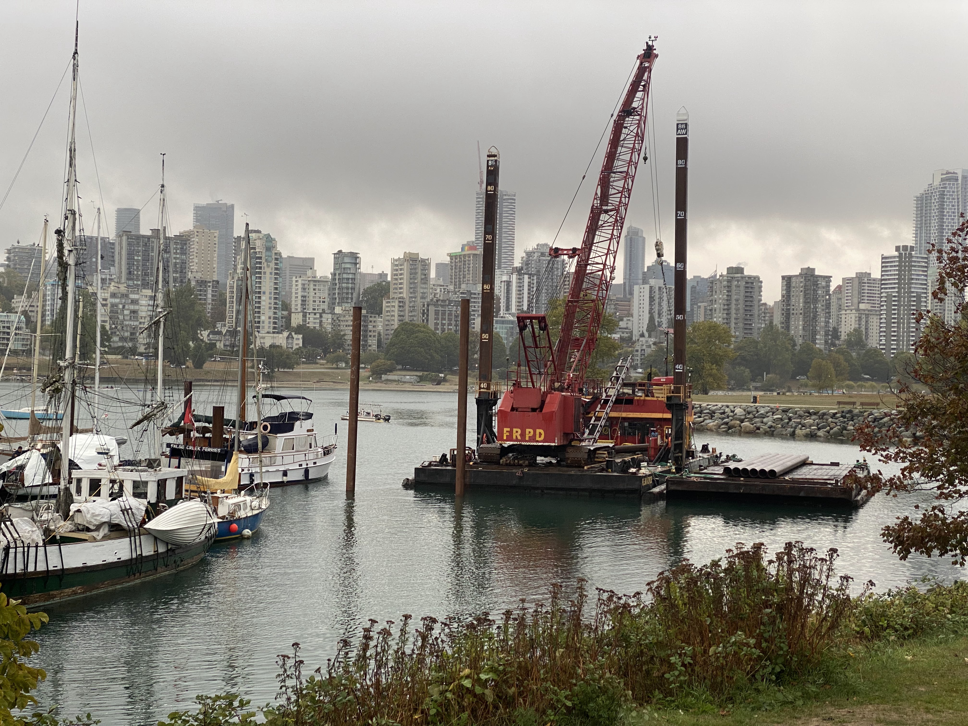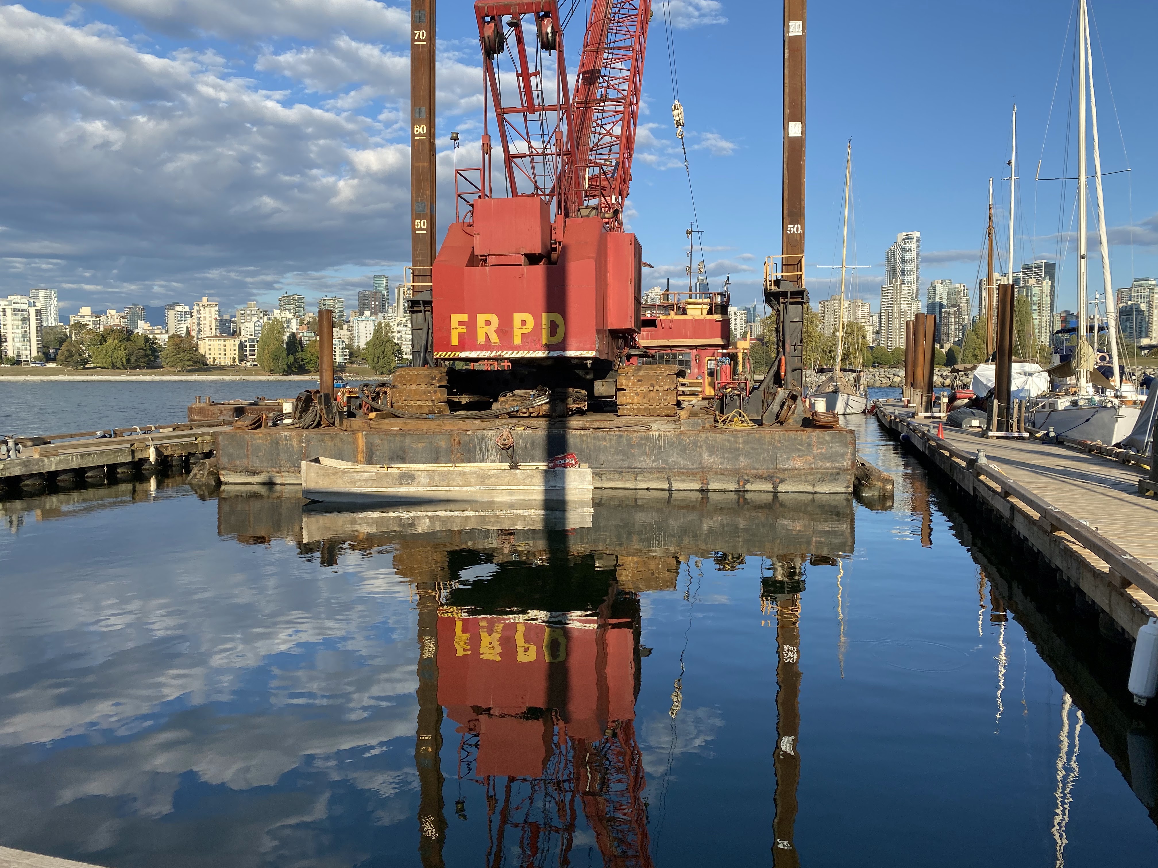 In September, our lovely Heritage Harbour was home to a pile-driver and barge for a few days, as they replaced most of the pilings, a very welcome and much-needed improvement!! We got a timelapse of the process: