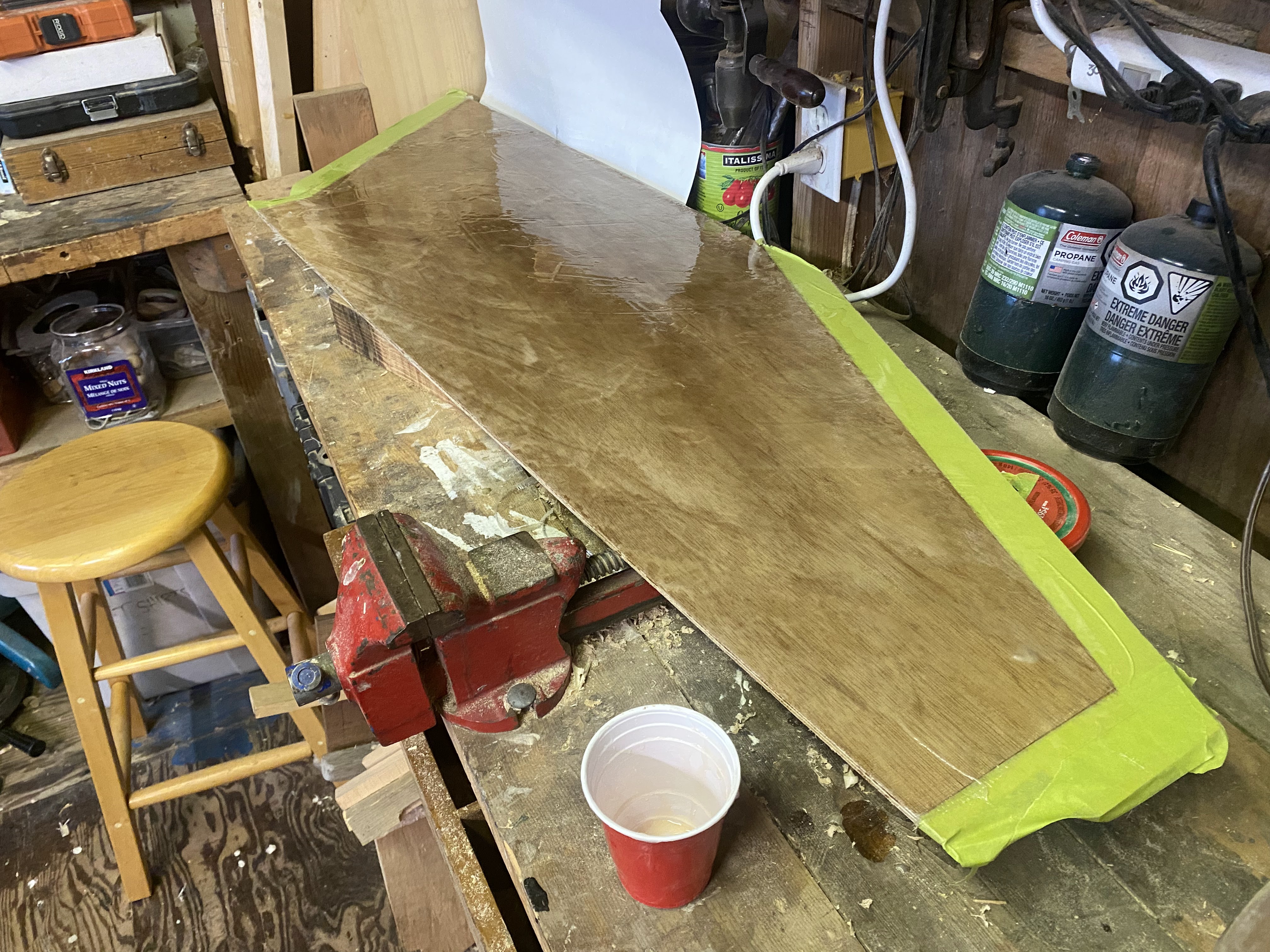 Next, we cut down the transom and capped it with a strip of hardwood – it was nice to get rid of that oversized chunk of plywood!