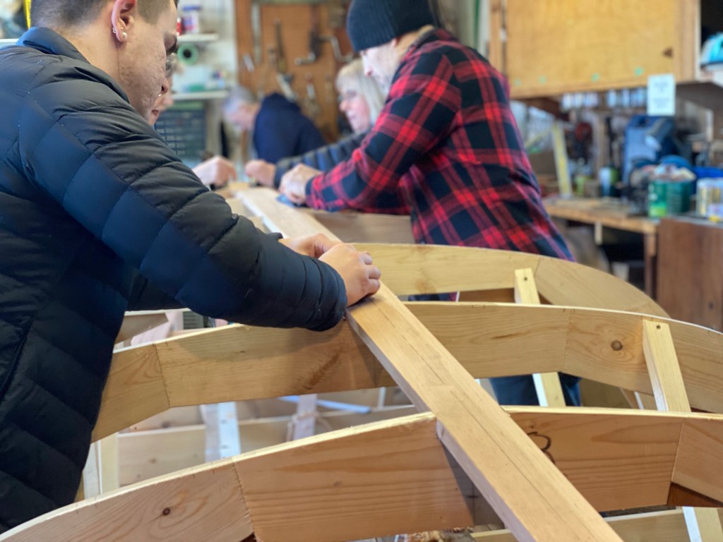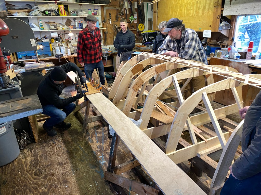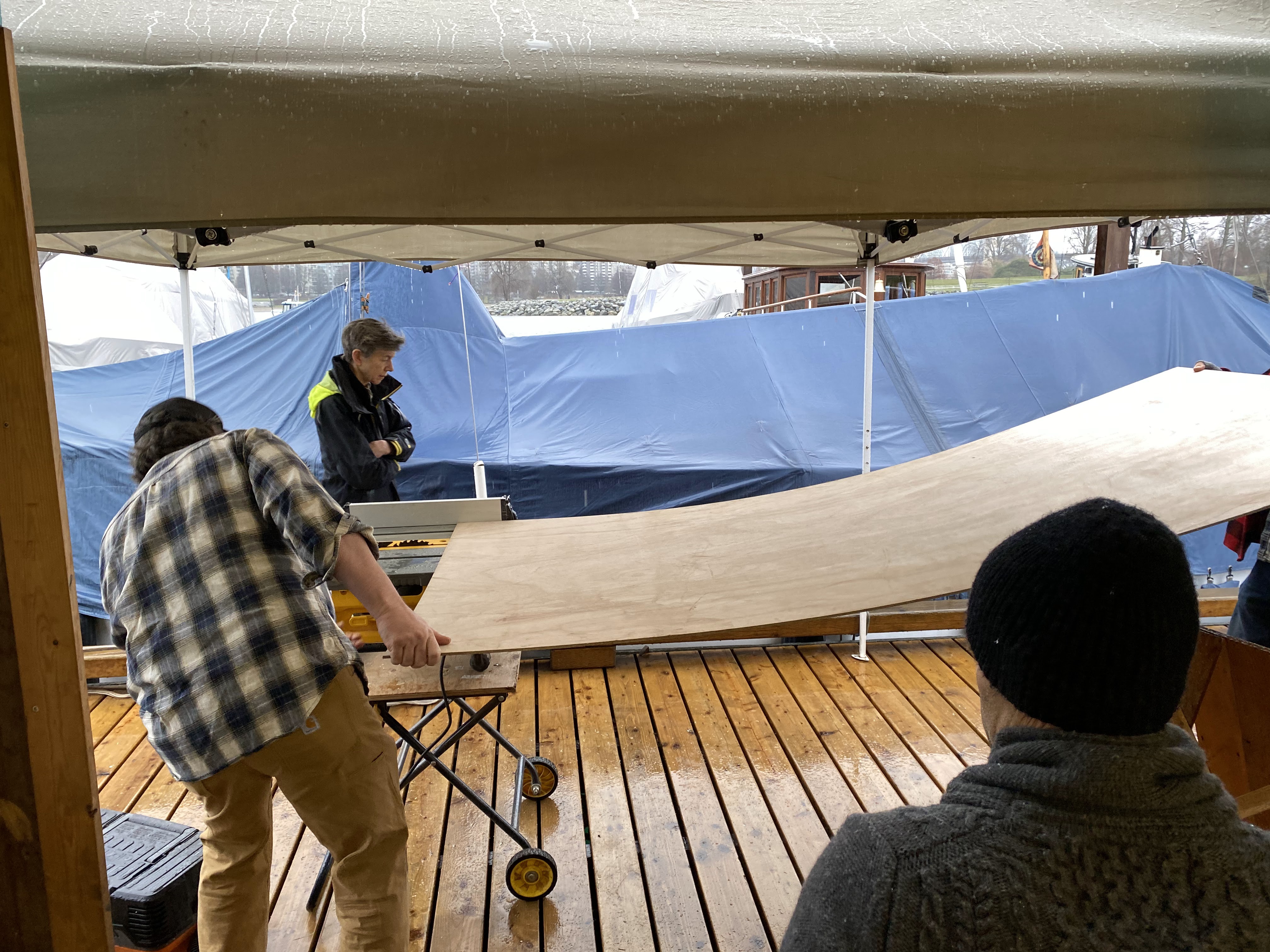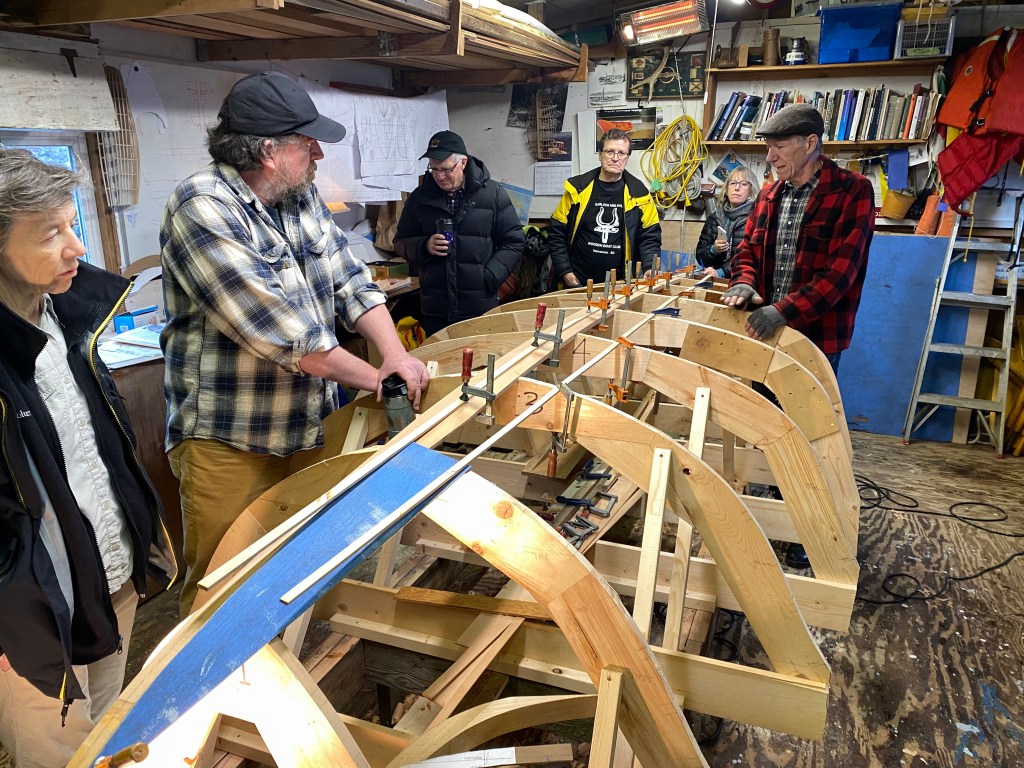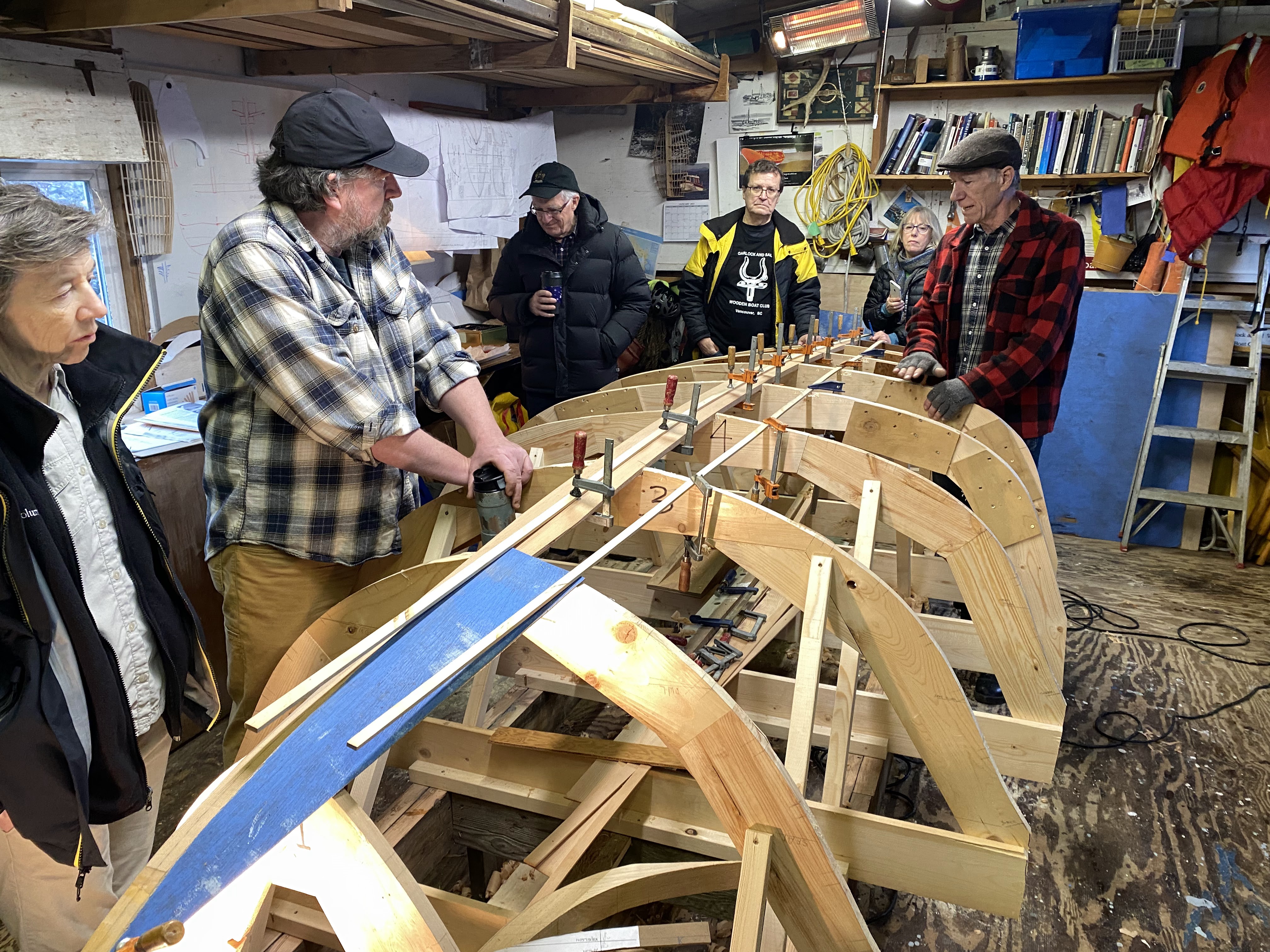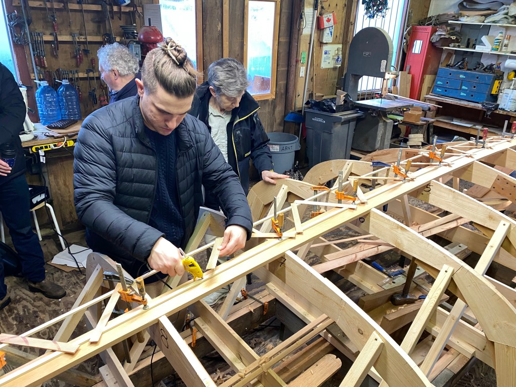 After we got the keelson shaped, we took advantage of the gorgeous mid-winter day, and got all 4 boats out to enjoy some fun on the water! The rowboat made a trip to Granville Island for some beer, bread and cheese to welcome the sailors back to the dock – always appreciated!! What a fabulous day!