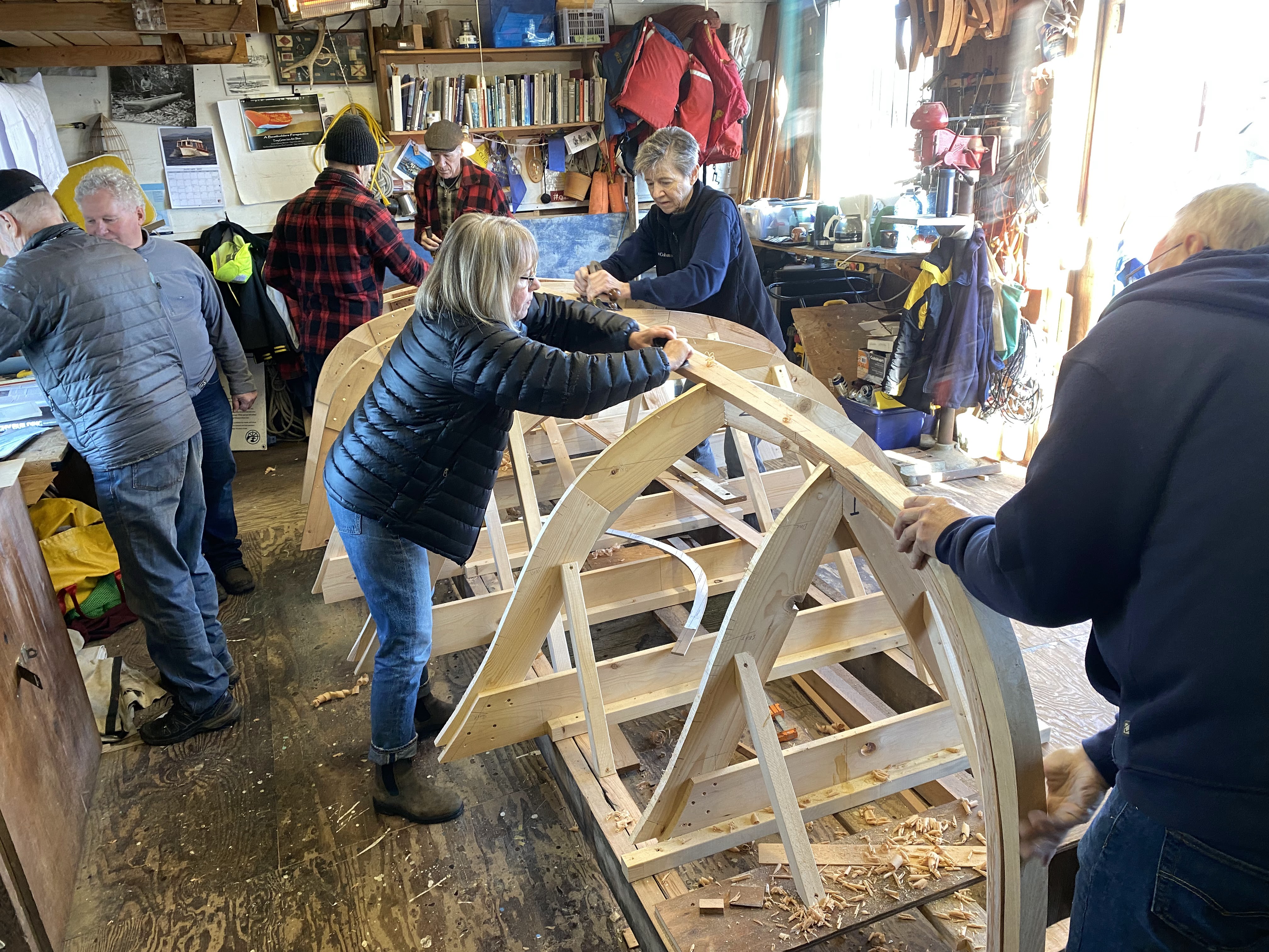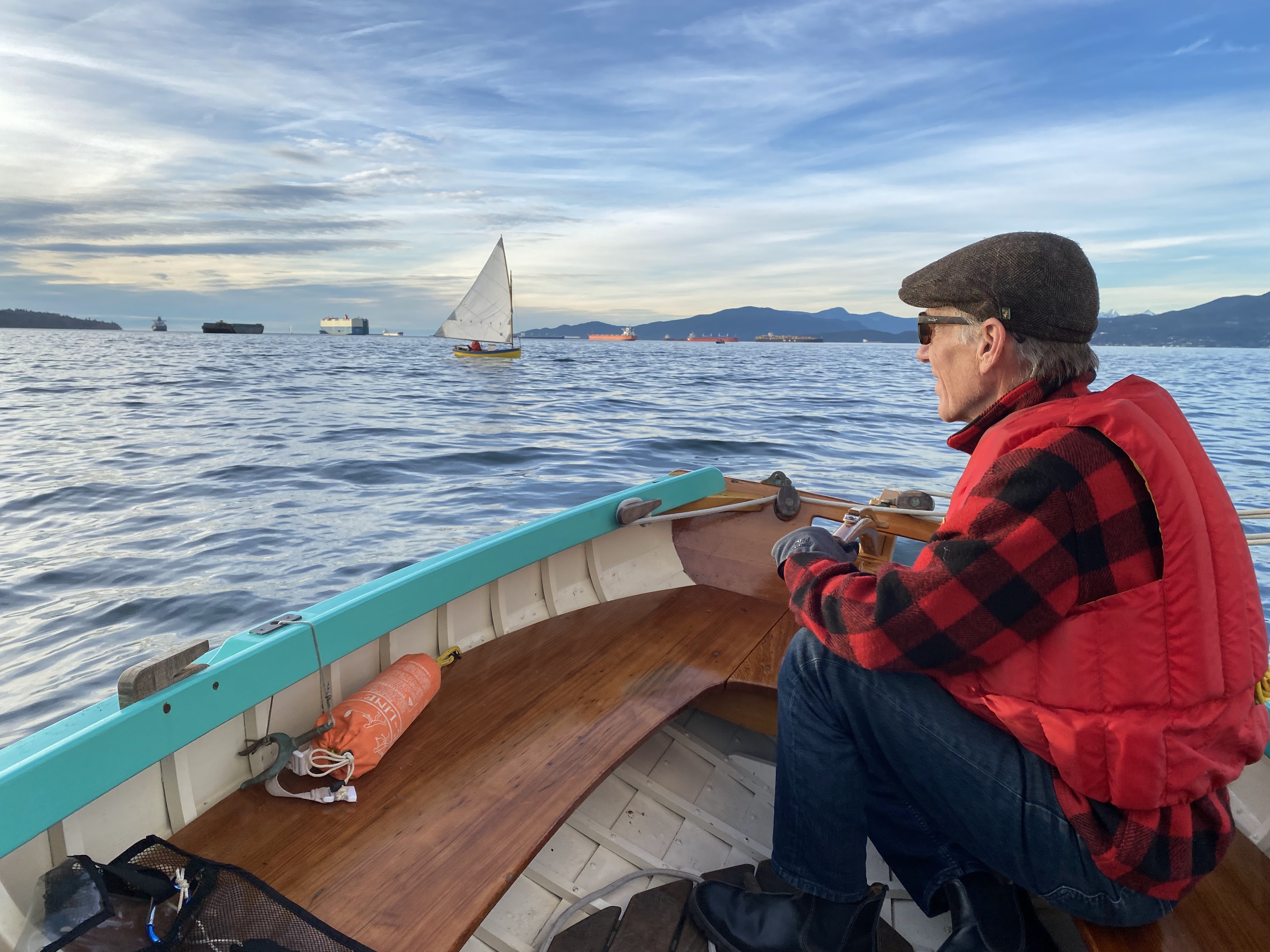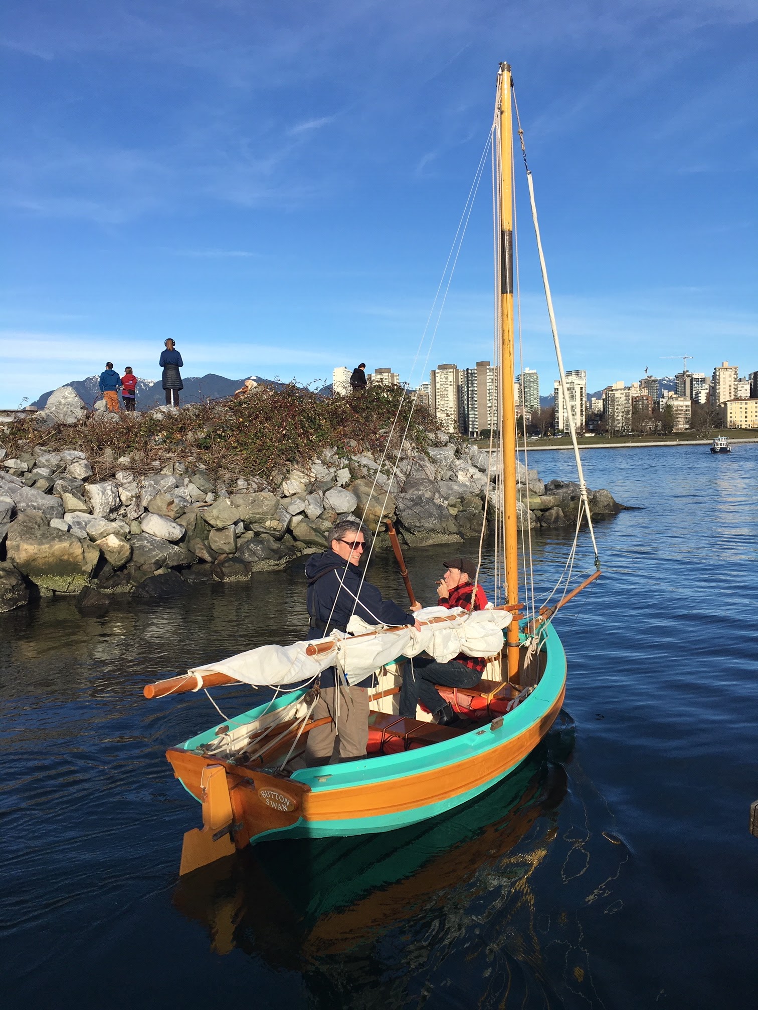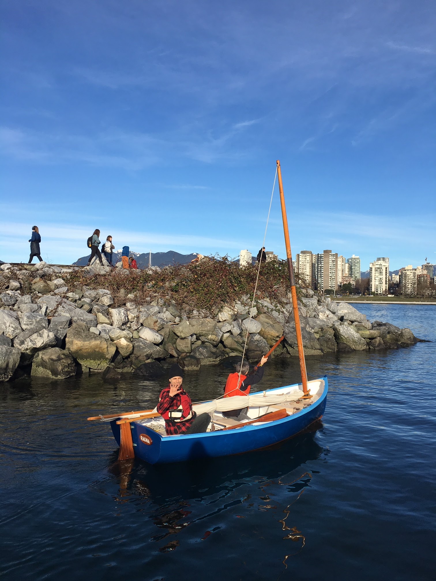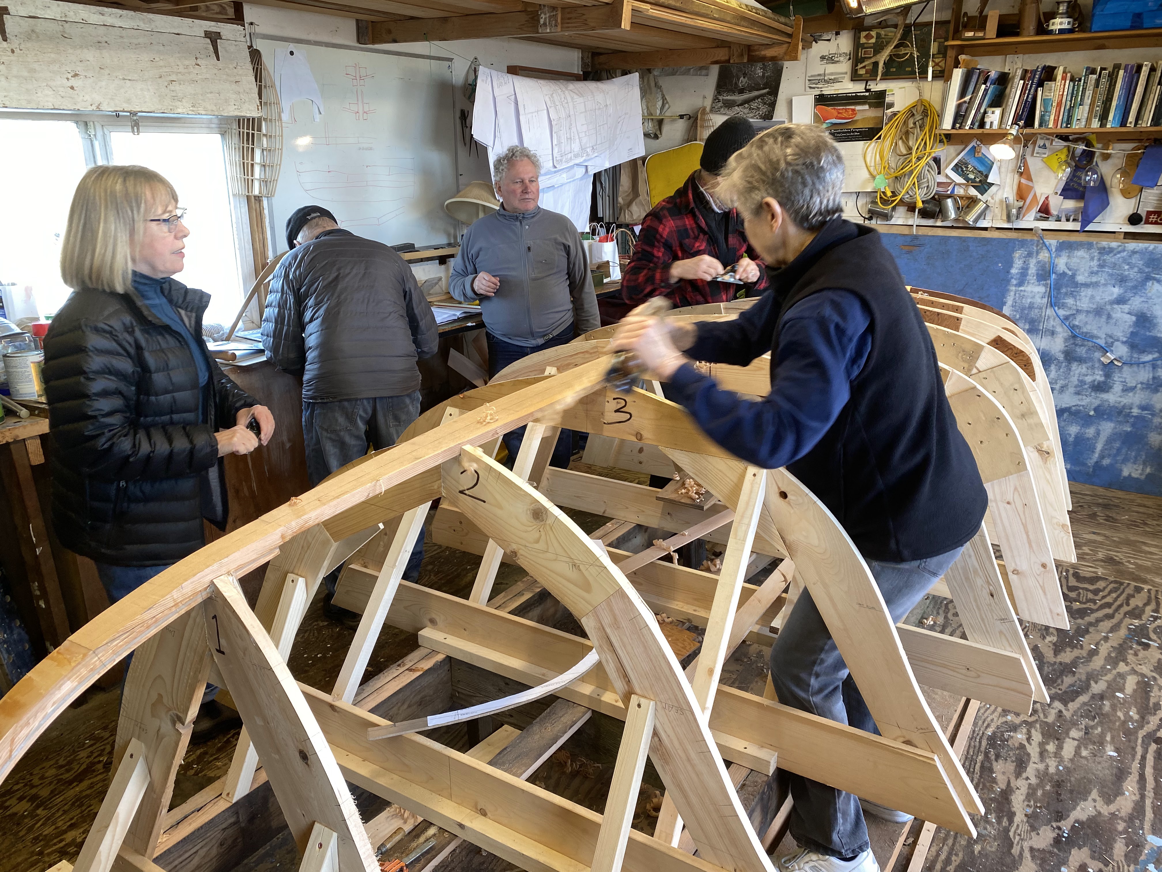 After we got the keelson shaped, we took advantage of the gorgeous mid-winter day, and got all 4 boats out to enjoy some fun on the water! The rowboat made a trip to Granville Island for some beer, bread and cheese to welcome the sailors back to the dock – always appreciated!! What a fabulous day!