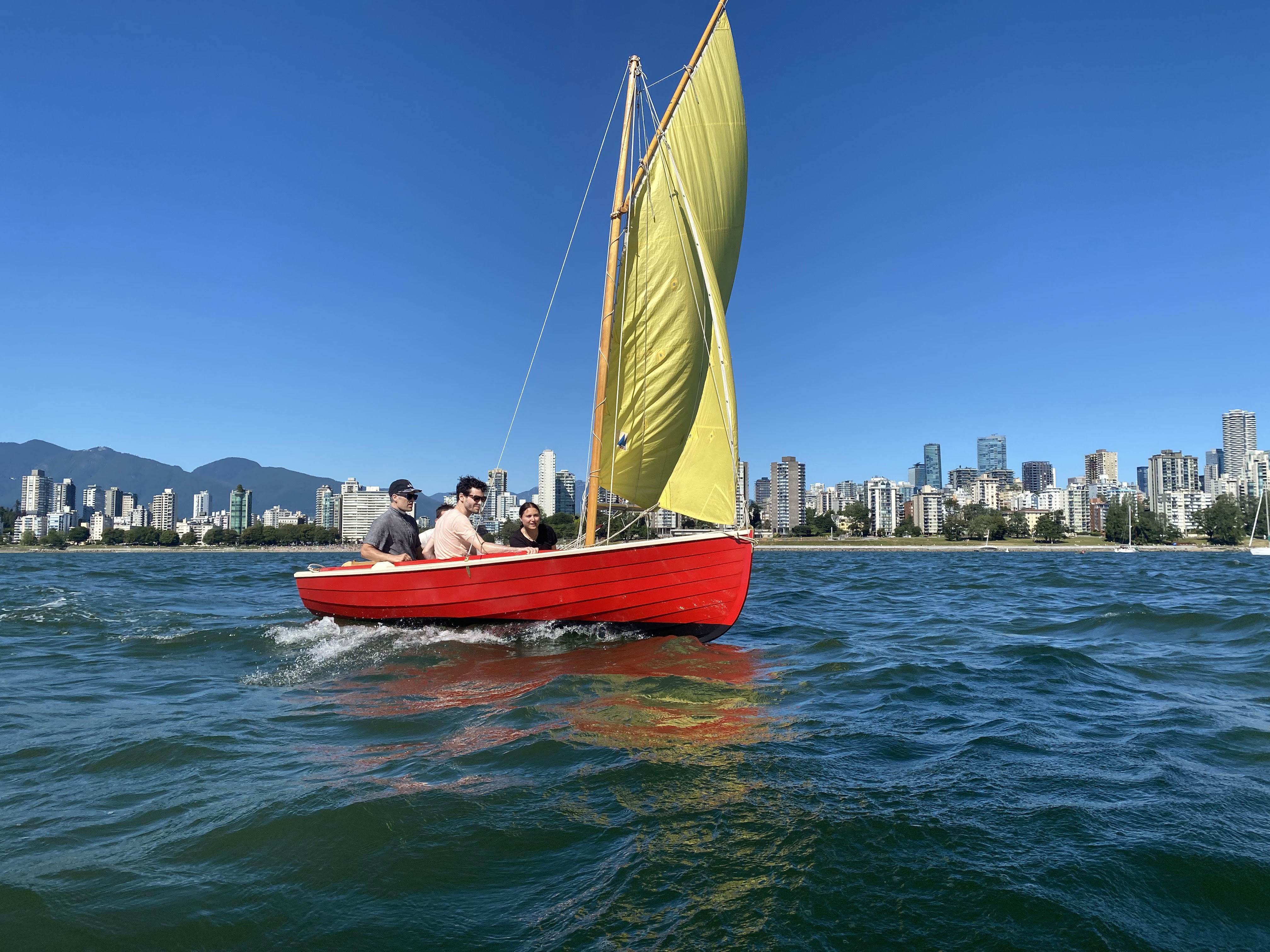 A fine sailing craft built in red cedar strips and sheathed in fibreglass cloth.